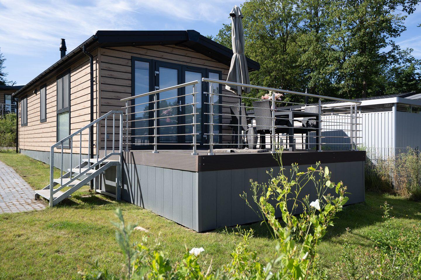 Das Ostseecamp Ferienhaus Fuchsbau (107) in Scharbeutz bietet auf 40 m² Platz für bis zu vier Personen. Zwei Schlafzimmer, ein modernes Bad mit bodengleicher Dusche, eine offene Küche und ein gemütlicher Wohnbereich sorgen für Komfort. Die überdachte Terrasse mit Gartenmöbeln und Grill lädt zum Entspannen ein. WLAN, Satelliten-TV und ein Privatparkplatz sind vorhanden. Haustiere sind willkommen.