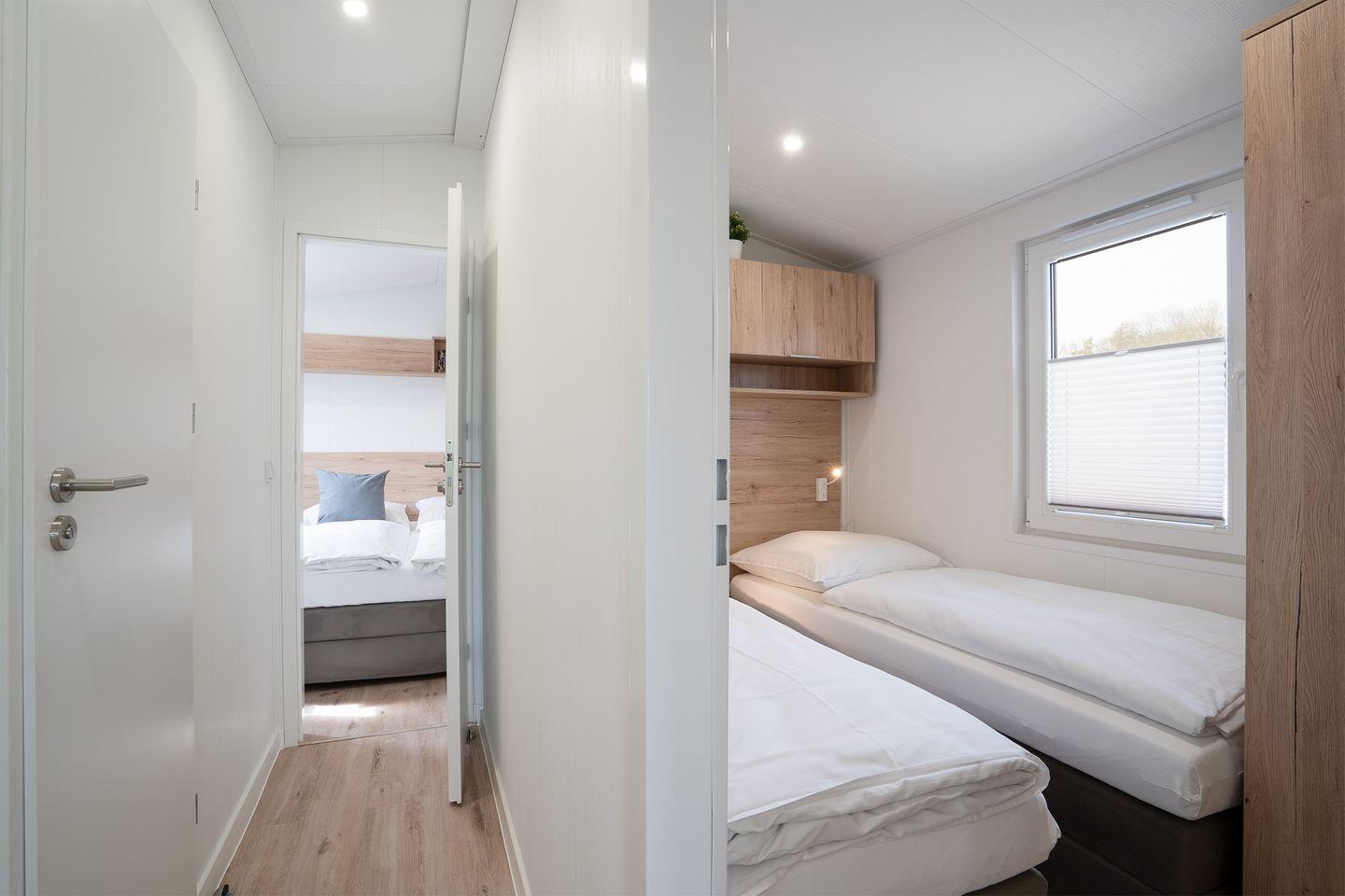 Das Badezimmer verfügt über eine moderne Dusche und eine Handtuchheizung. Im Elternschlafzimmer erwartet Sie ebenfalls ein großer Flachbildfernseher sowie ein himmlisches Doppelbett für pure Entspannung und Ruhe. Das zweite Schlafzimmer bietet zwei Einzelbetten, die auch zu einem Doppelbett zusammengestellt werden können.
