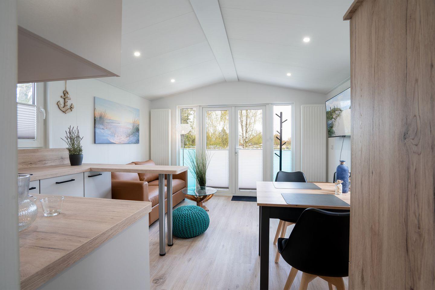 Unsere modernen Häuser bieten auf 40 m² Platz für bis zu 4 Personen. Sie sind ideal für einen entspannten Urlaub mit Freunden, der Familie oder auch für Veranstaltungen geeignet. Falls Sie mehr Platz benötigen, stehen Ihnen auch unsere 6 identisch ausgestatteten Nachbarhäuser zur Verfügung.