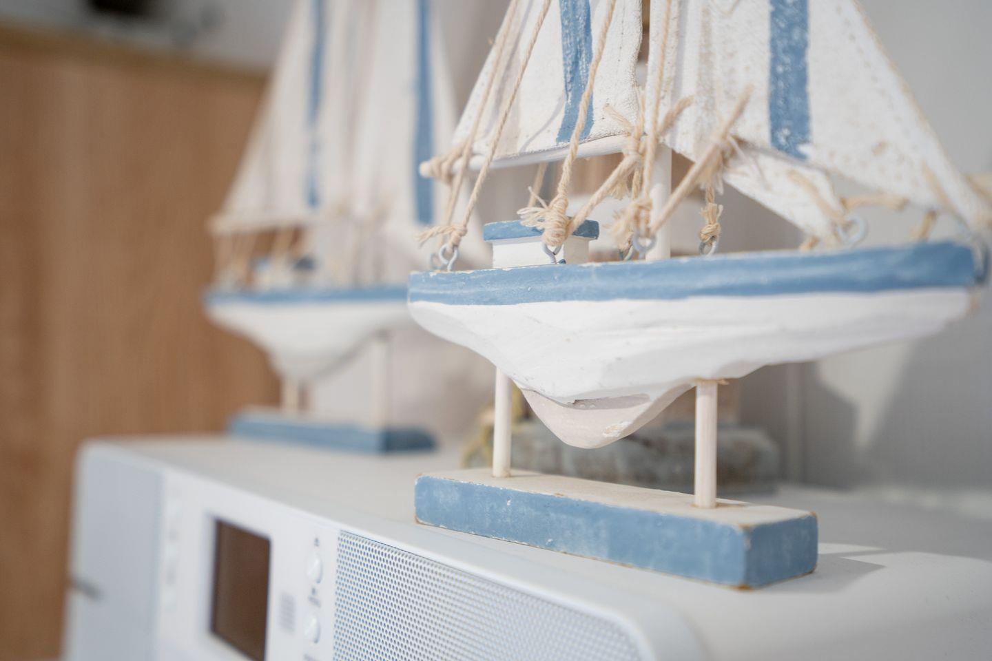 Im Inneren des Ferienhauses finden Sie eine gut ausgestattete Küche, in der Sie Ihre Lieblingsgerichte zubereiten können. Das Badezimmer ist modern und komfortabel ausgestattet. Das offene Wohn- und Esszimmer lädt zu gemeinsamen Mahlzeiten und gemütlichen Abenden ein. Das Ferienhaus "Liegeplatz" ist der ideale Ort, um familiäre Geborgenheit zu erleben.