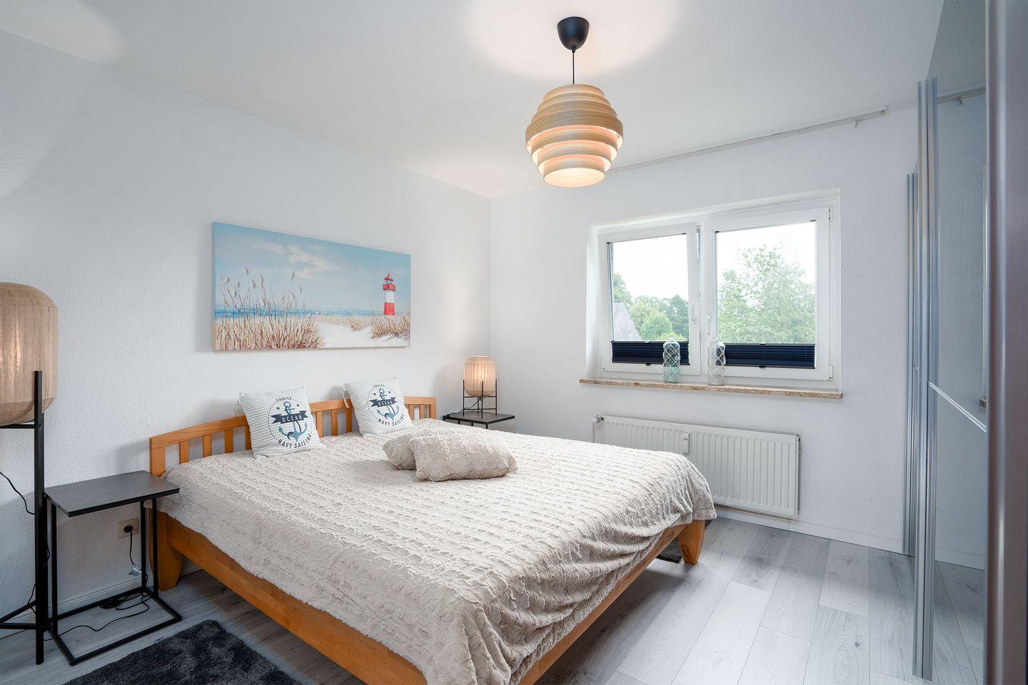 - Schlafzimmer: Ein Schlafzimmer mit einem bequemen Doppelbett und ausreichend Stauraum für Kleidung und Gepäck.