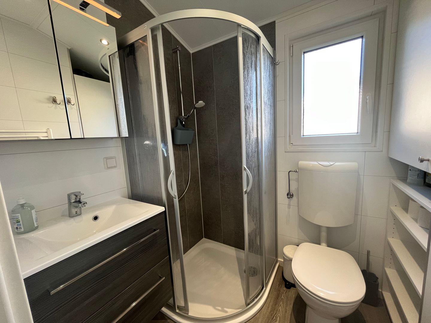 Die voll ausgestattete Wohnküche lässt keine Wünsche offen. Das Bad verfügt über WC und Dusche.