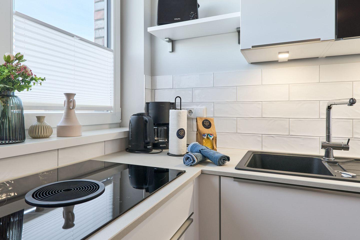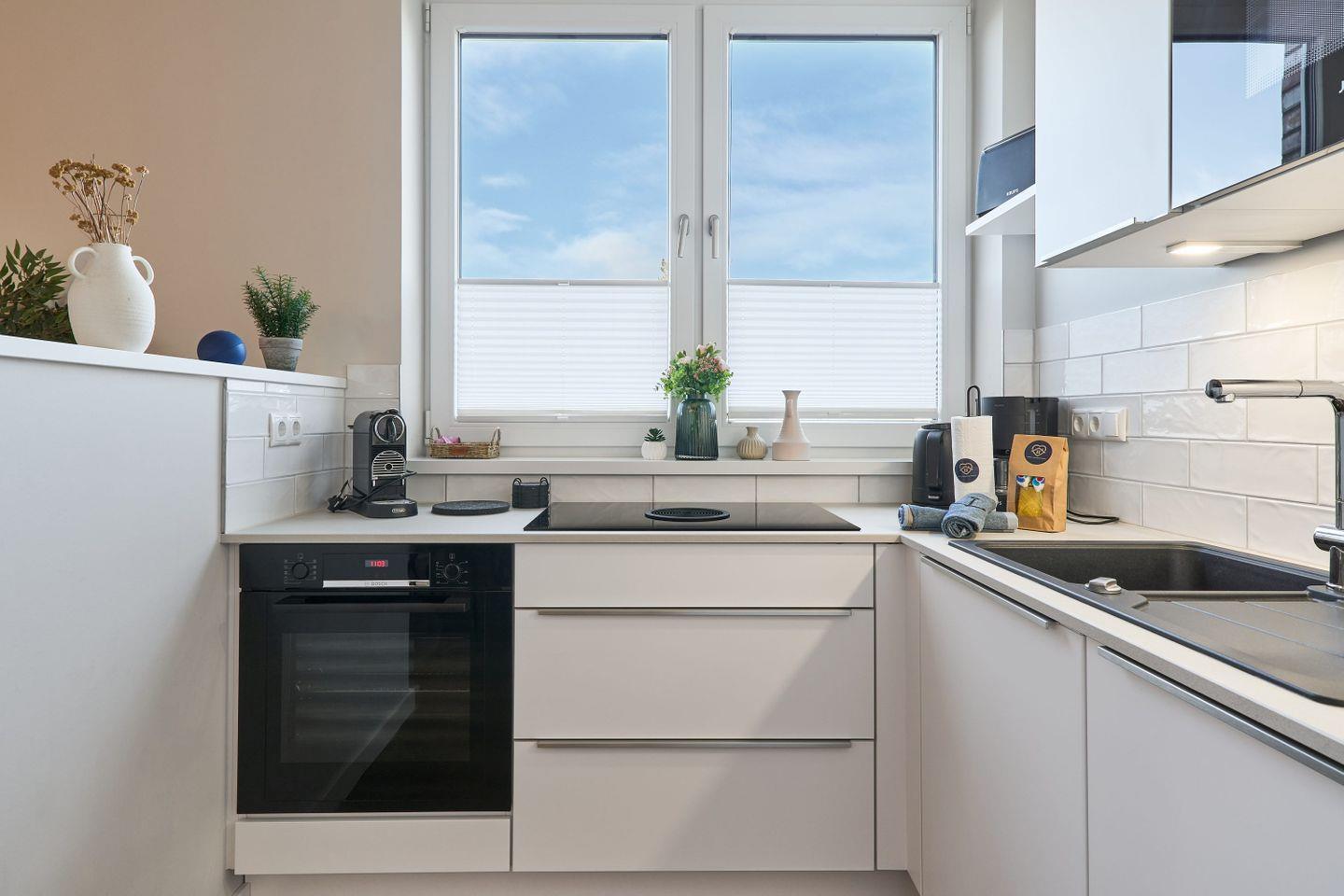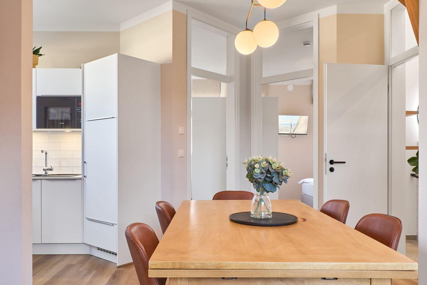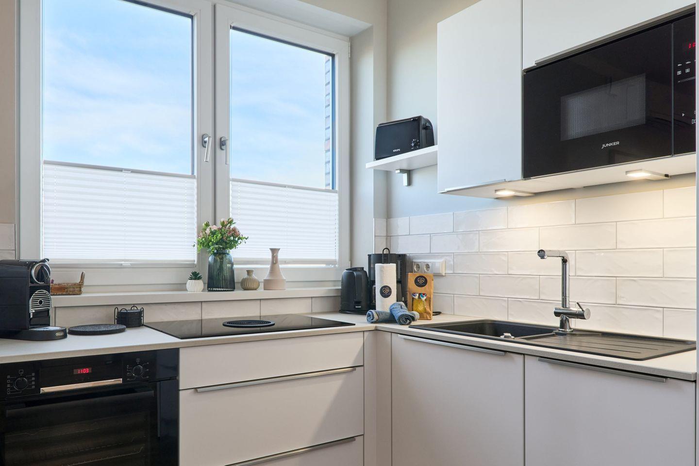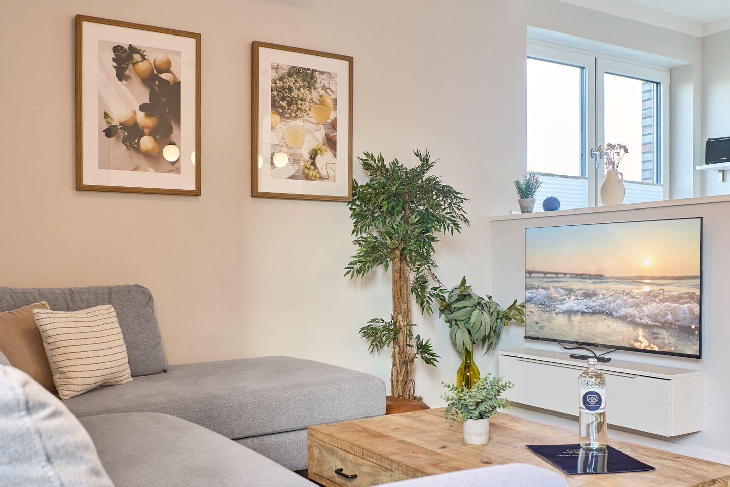 Die exklusive, geschmackvoll modern eingerichtete Ferienwohnung Sail Away bietet auf großzügigen 100 qm Platz für bis zu 8 Personen und ist ideal für Familien und Freundesgruppen, die sich ein hochwertiges Wohnerlebnis wünschen. Der helle Wohnbereich lädt mit einer gemütlichen Schlafcouch (140x200 cm), einem 50-Zoll-Smart-TV und einem großen Essbereich zu entspannten Stunden ein. Die Küche ist bestens ausgestattet, um mit Leichtigkeit leckere Mahlzeiten zu zaubern, darunter eine Nespresso- und eine Filterkaffeemaschine sowie Toaster, Wasserkocher, Mikrowelle und Ofen.
