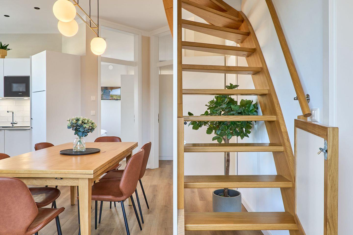 Ein privater Abstellraum sorgt für zusätzlichen Komfort: Mit Waschtrockner, Dyson-Akkustaubsauger, Wäscheständer, Bügeleisen und Bügelbrett ist für alle praktischen Notwendigkeiten gesorgt. Zur Wohnung gehört auch ein Parkplatz, ein Fahrradschuppen sowie WLAN, und eine Ladestation für Elektroautos steht auf Wunsch zur Verfügung. Familien profitieren von einem Babybett und Hochstuhl, die auf Anfrage bereitgestellt werden.