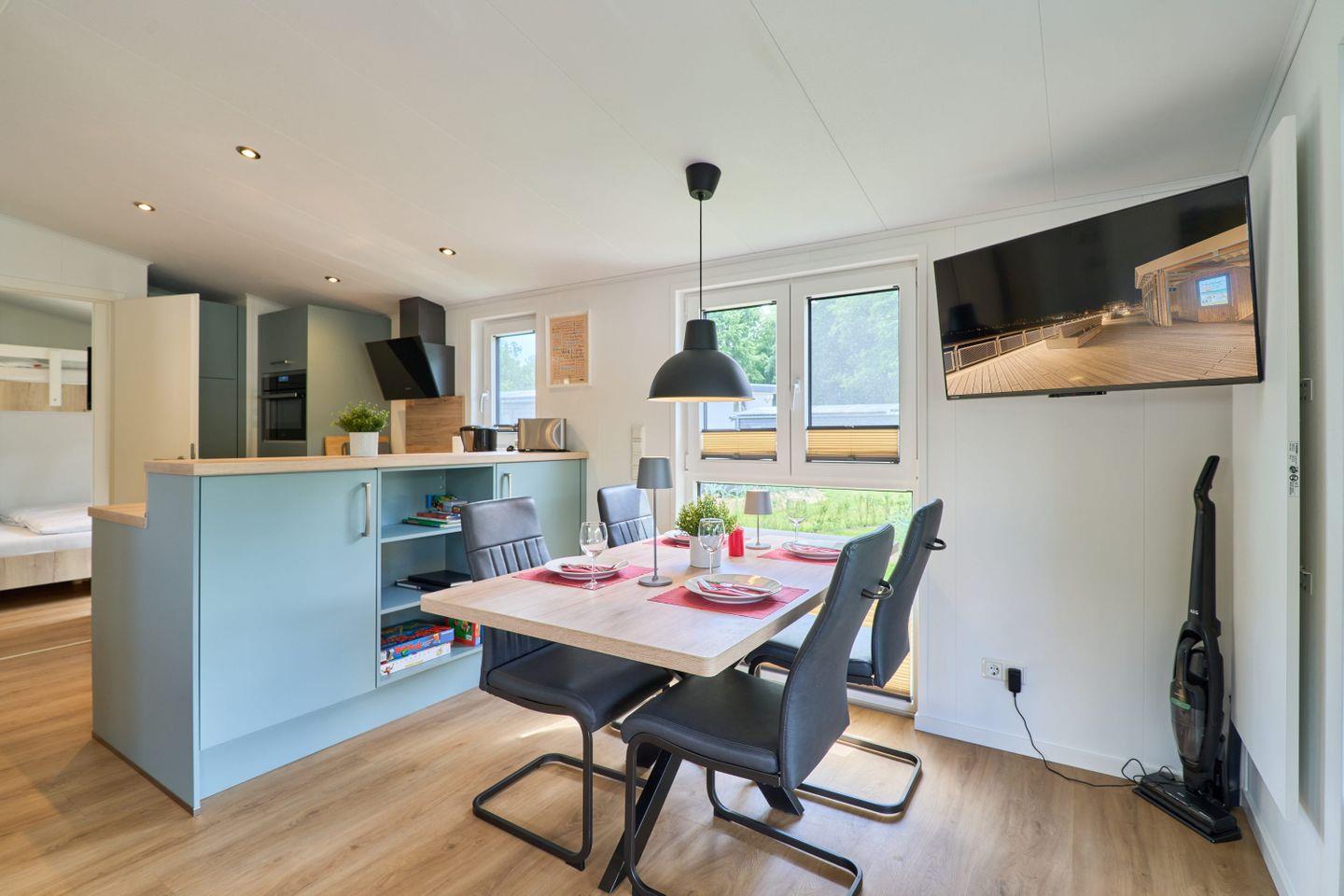 Die 40 m² große Ferienwohnung ist bis ins Detail durchdacht. Die offene Küche zum Wohnzimmer ist mit allen erforderlichen Annehmlichkeiten ausgestattet, darunter ein komfortabler Herd, ein Backofen, eine Spülmaschine sowie Kühlschrank und Gefrierfach. Hier können Sie köstliche Mahlzeiten zubereiten und gemeinsam am Esstisch genießen. Das Wohnzimmer ist der perfekte Ort, um nach einem ereignisreichen Tag zu entspannen, entweder auf dem bequemen Sofa oder beim Ansehen Ihres Lieblingsprogramms auf dem Satelliten-TV. WLAN sorgt dafür, dass Sie auch im Urlaub immer online bleiben können.