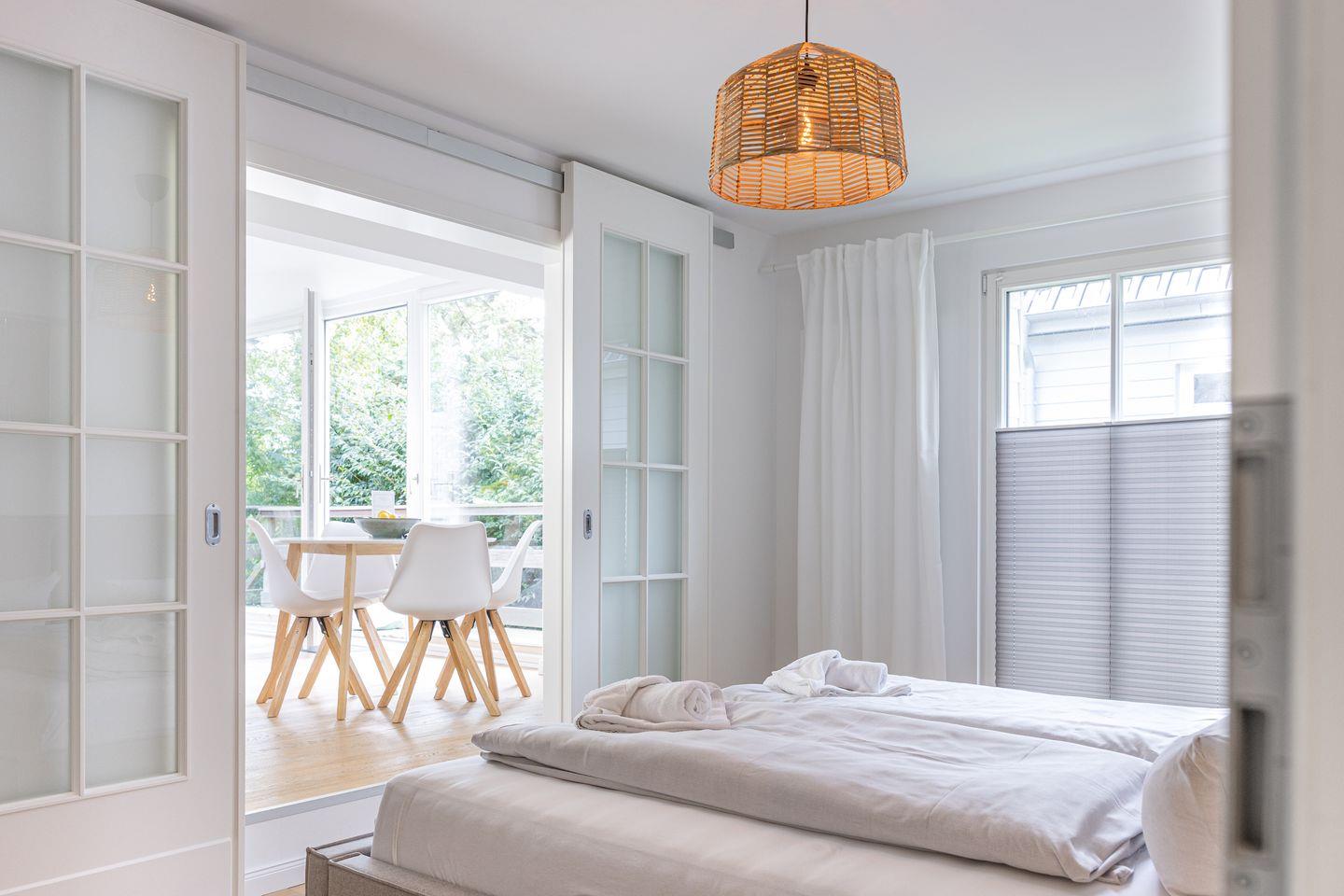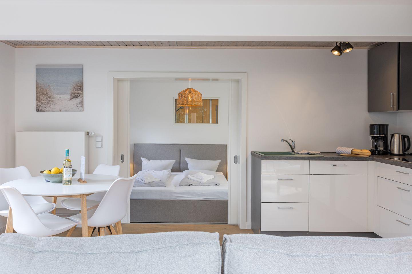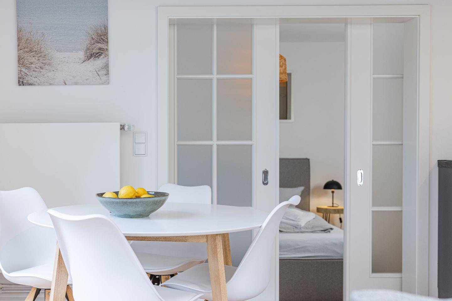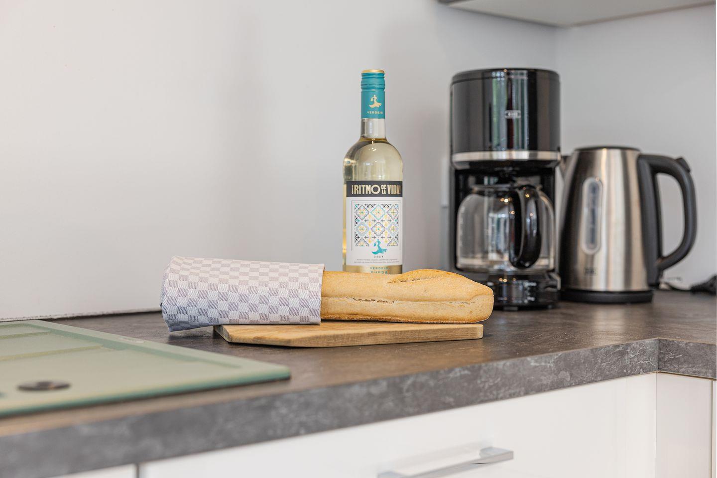 Helle Farben, Parkettböden und ein offenes Raumkonzept schaffen eine freundliche Atmosphäre. Die voll ausgestattete Küche mit Spülmaschine und Kaffeemaschine schließt sich direkt an den Wohnbereich mit Sofa und Esstisch an. Im Schlafzimmer sorgt ein komfortables Bett für erholsamen Schlaf. Das Bad ist großzügig geschnitten und mit bodengleicher Dusche sowie Badewanne ausgestattet. WLAN, TV, Bettwäsche und Handtücher sind inklusive.