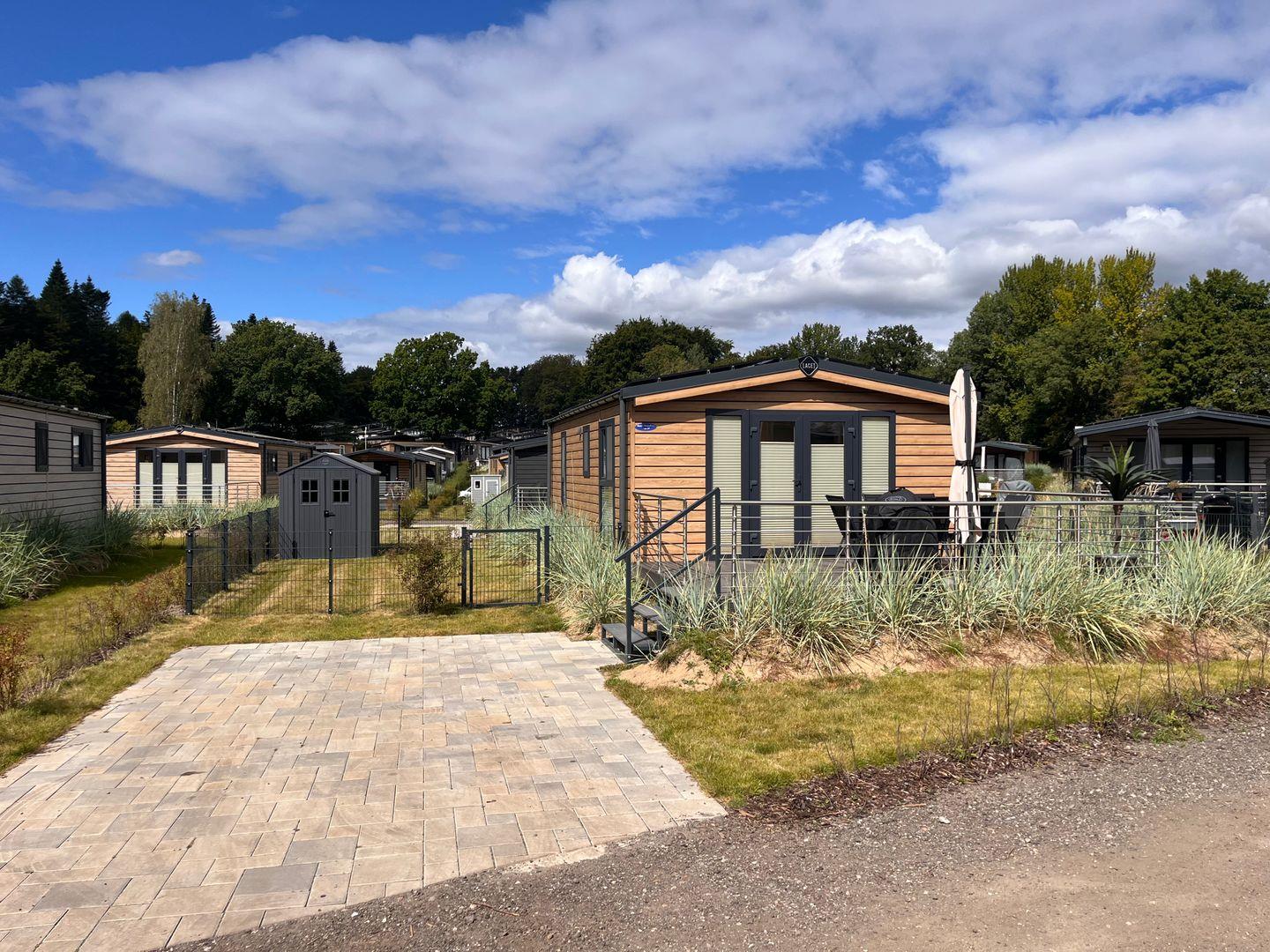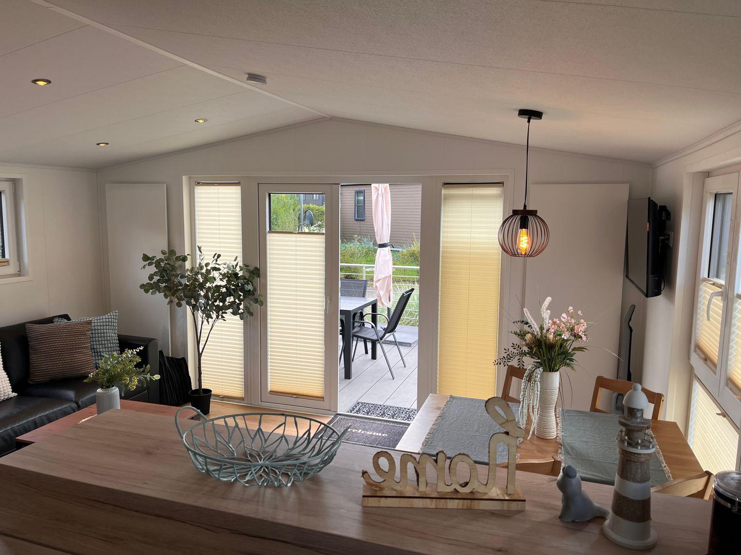 Große Fenster sorgen für eine helle, freundliche Atmosphäre und bieten den Blick ins Grüne. Die eigene Terrasse mit Gartenmöbeln lädt zum Frühstücken im Freien oder zum entspannten Ausklang eines Urlaubstages ein. Durch die freistehende Bauweise genießen Sie Privatsphäre und direkten Zugang zum Garten mit schönem Gartenblick.
