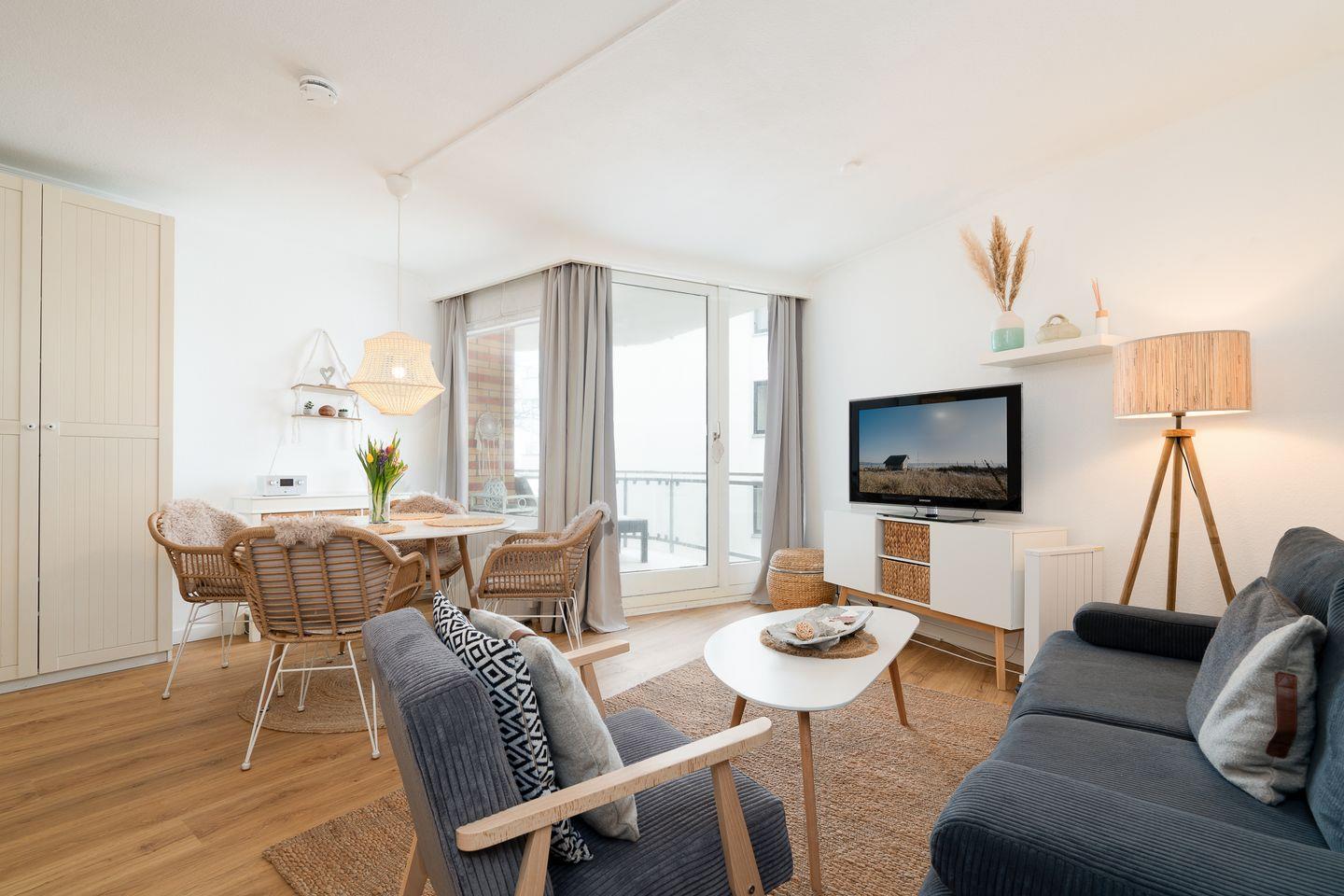 Das Apartment "Montemare 20" in Scharbeutz bietet auf 37 m² Platz für bis zu vier Personen. Es verfügt über einen überdachten Balkon mit seitlichem Ostseeblick, ein modernes Duschbad sowie Küche mit Spülmaschine und 2-Platten-Ceranherd. Ein Boxspringbett und ein Schlafsofa sorgen für entspanntes Schlafen im Wohnbereich. Die 1-Zimmer-Wohnung befindet sich in der zweiten Etage (ohne Aufzug), Strand und Meer sind nur 30 Meter entfernt. WLAN und PKW-Stellplatz inklusive.