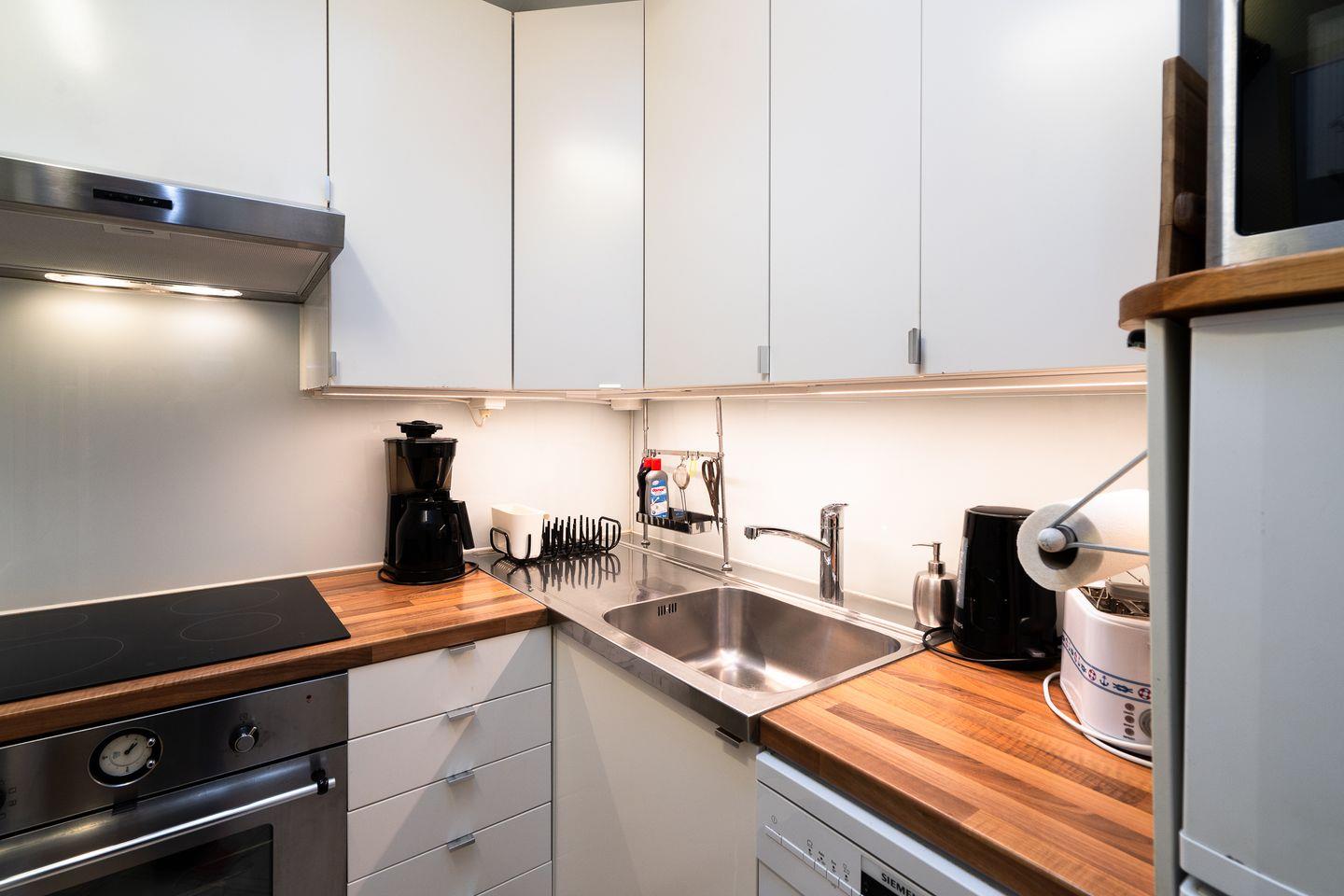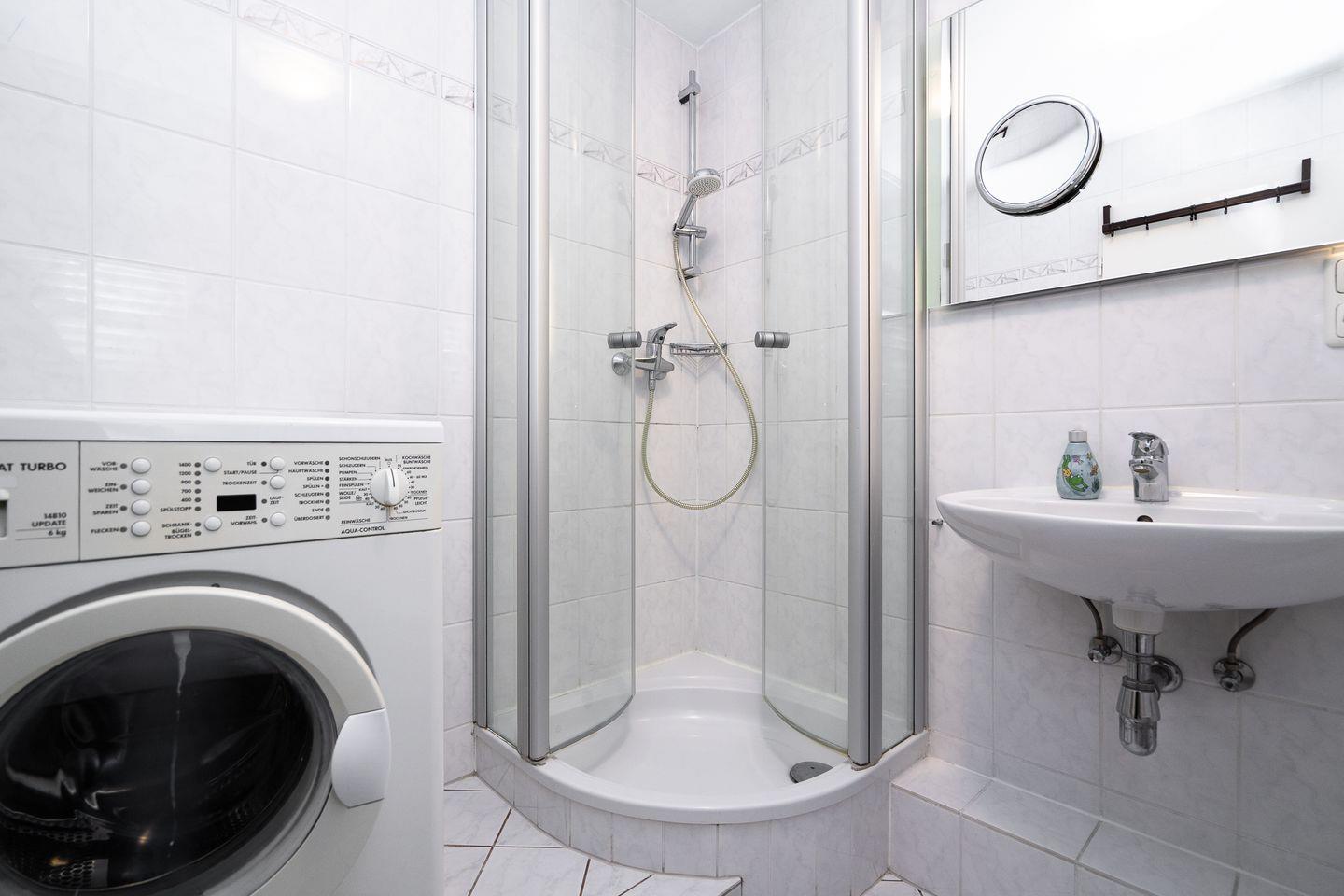 Die separate Küche ist vollständig ausgestattet und verfügt über Annehmlichkeiten wie Kühlschrank, Geschirrspüler, und Mikrowelle – ideal für eine unkomplizierte Selbstversorgung während Ihres Aufenthalts. Das Badezimmer ist mit Dusche (Viertelkreisdusche mit Radius 75 cm), Waschbecken, beheizbarem Handtuchhalter und WC ausgestattet, ein Haartrockner steht ebenfalls zur Verfügung. Ein Waschtrockner im Bad erledigt mit Leichtigkeit die Urlaubswäsche.