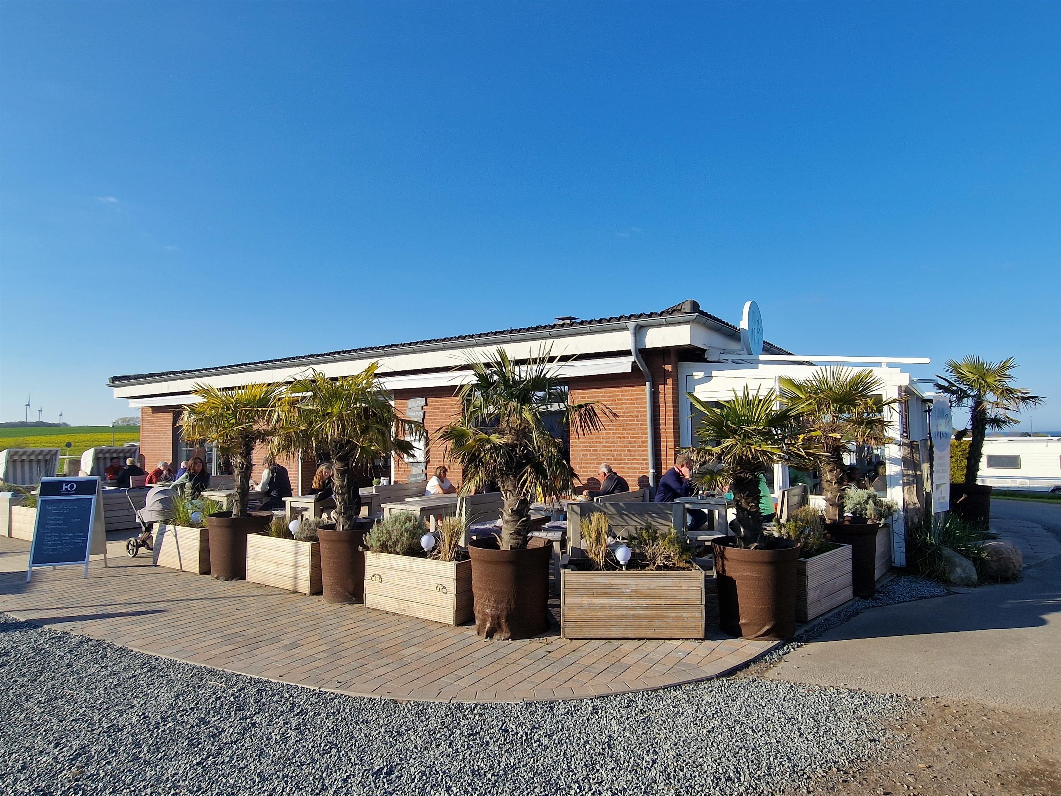 Die Terrasse mit Gartenmöbel und Strandkorb rundet das Angebot ab.