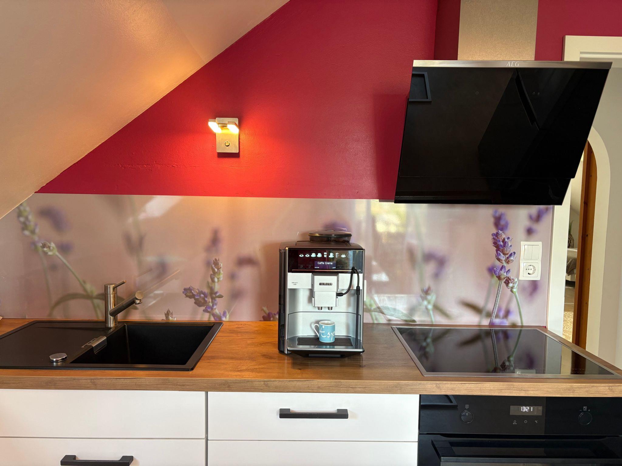 - Kitchen appliances: coffee machine, espresso machine, teapot with teapot warmer, thermos flask, toaster, egg boiler, kettle, microwave