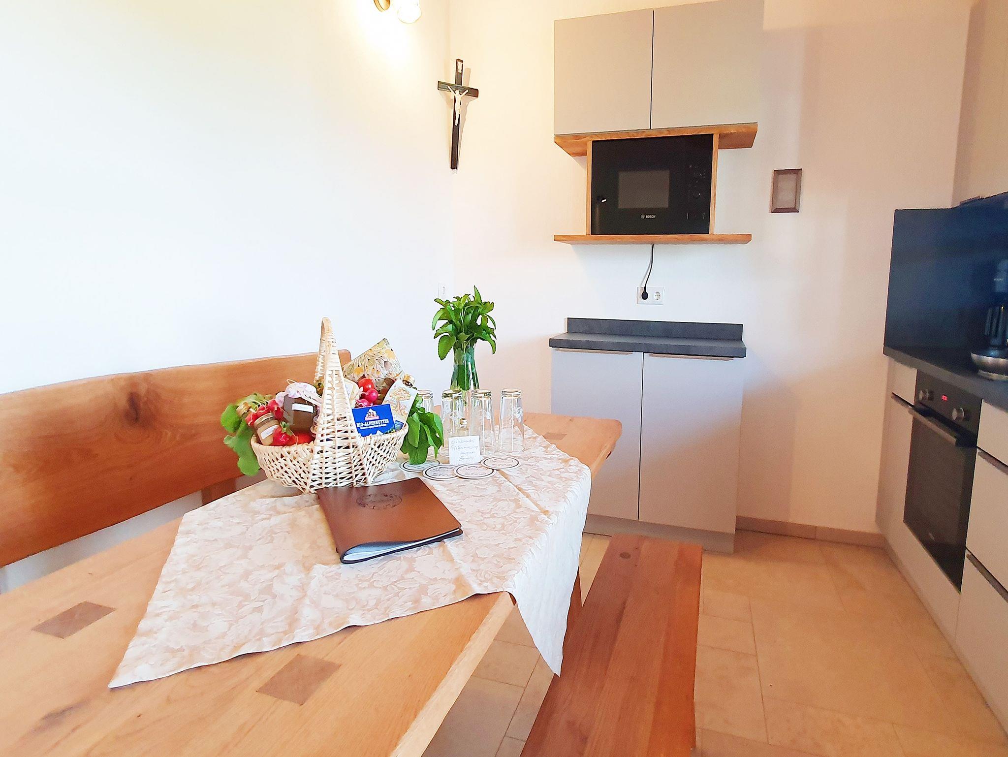 Sehr gemütliche und komfortable Neubauwohnung auf dem Bauernhof mit Bergblick, absoluter Ruhe und ländlicher Idylle. Im Obergeschoss mit zweiter Ebene unter dem Dach (Kl.Galerie). Vom großzügigen Südbalkon aus Blick auf die bayerischen Alpen. Kindgerecht und seniorenfreundlich ausgestattet mit qualitativ hochwertigem Mobiliar zum Wohlfühlen und Entspannen.
