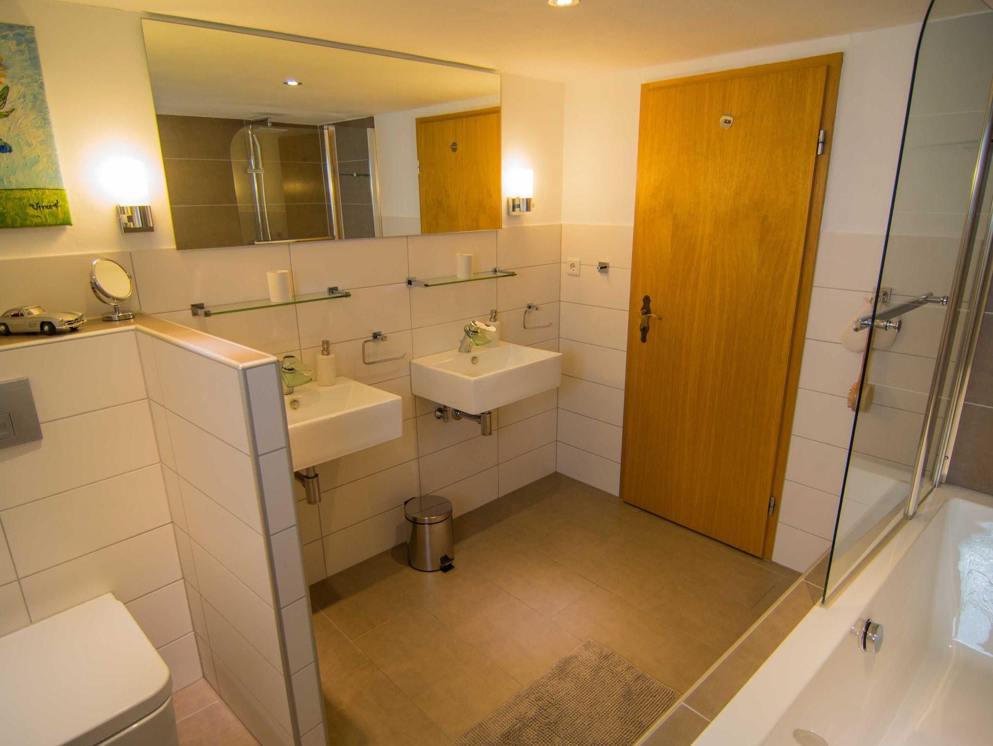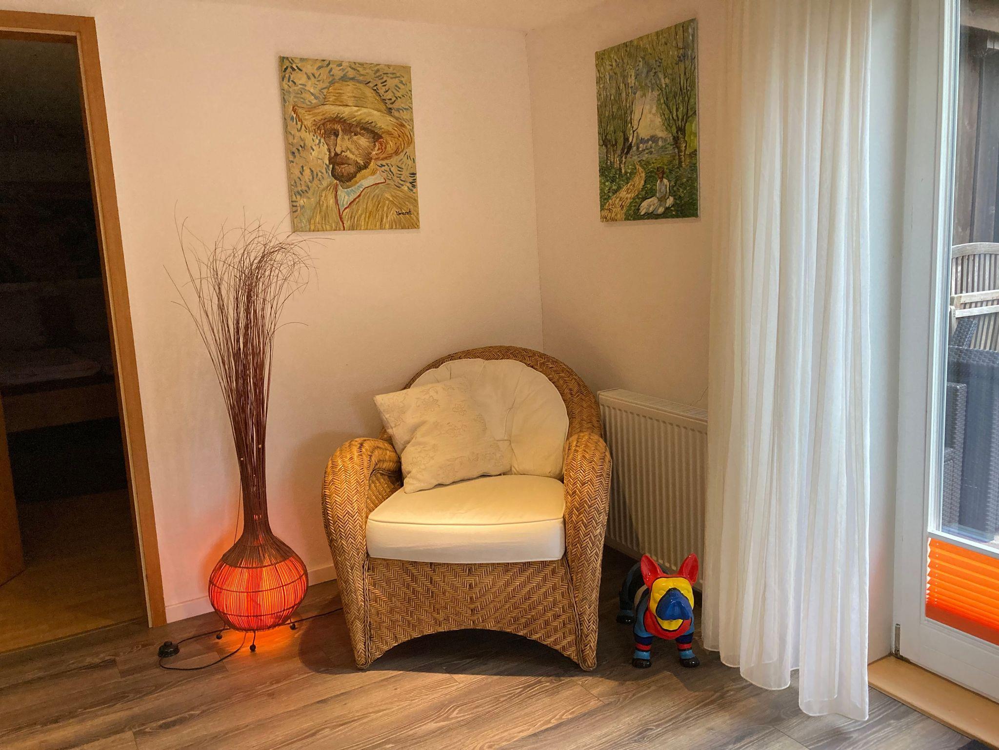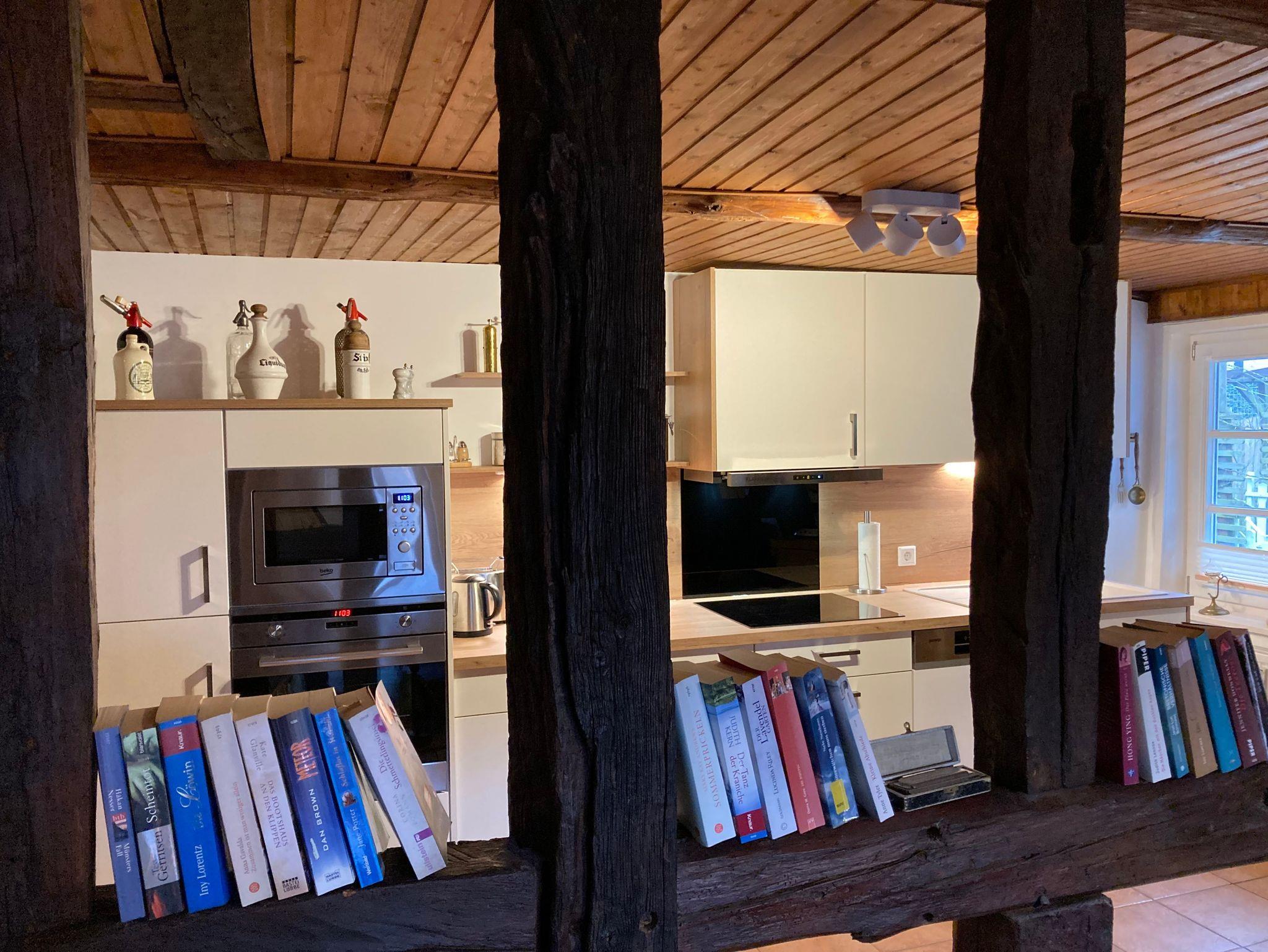 3-Zimmer-Wohnung 100 m² in der 1. Etage. Komfortabel und geschmackvoll eingerichtet: Wohnzimmer 25 m² mit Sat-TV (Flachbildschirm), CD und DVD. 2 Zimmer 16 m², jedes Zimmer mit 1 Doppelbett (180 cm, Länge 200 cm). Offene Küche 30 m² (Backofen, Geschirrspüler, 4 Glaskeramikherd Platten, Mikrowelle, elektrische Kaffeemaschine) mit Esstisch. Bad/Dusche/WC, Doppelwaschbecken. Balkon. Balkonmöbel, Gartengrill (mobil). Zur Verfügung: Waschmaschine, Wäschetrockner. Internet (Wireless LAN, gratis). Bitte beachten: Nichtraucher-Unterkunft. Maximal 1 Haustier/Hund erlaubt. Rauchmelder. Elektrokamin im Wohnzimmer. Zusätzliche Pad-Kaffeemaschine (Pads extra). Küche und Essbereich sind durch offenes Fachwerk optisch getrennt. Modern gestaltete Wohnung mit künstlerischem Ambiente.