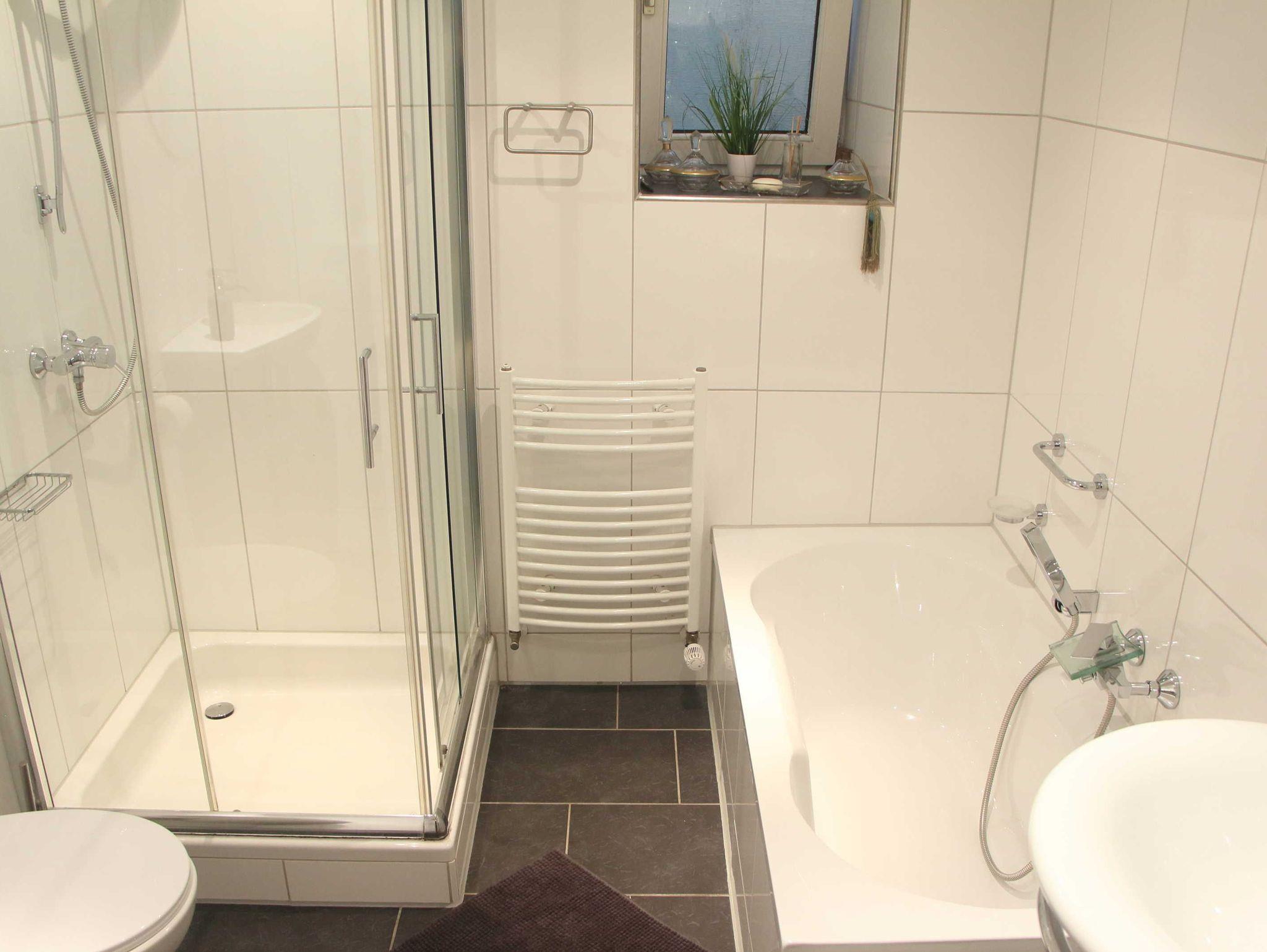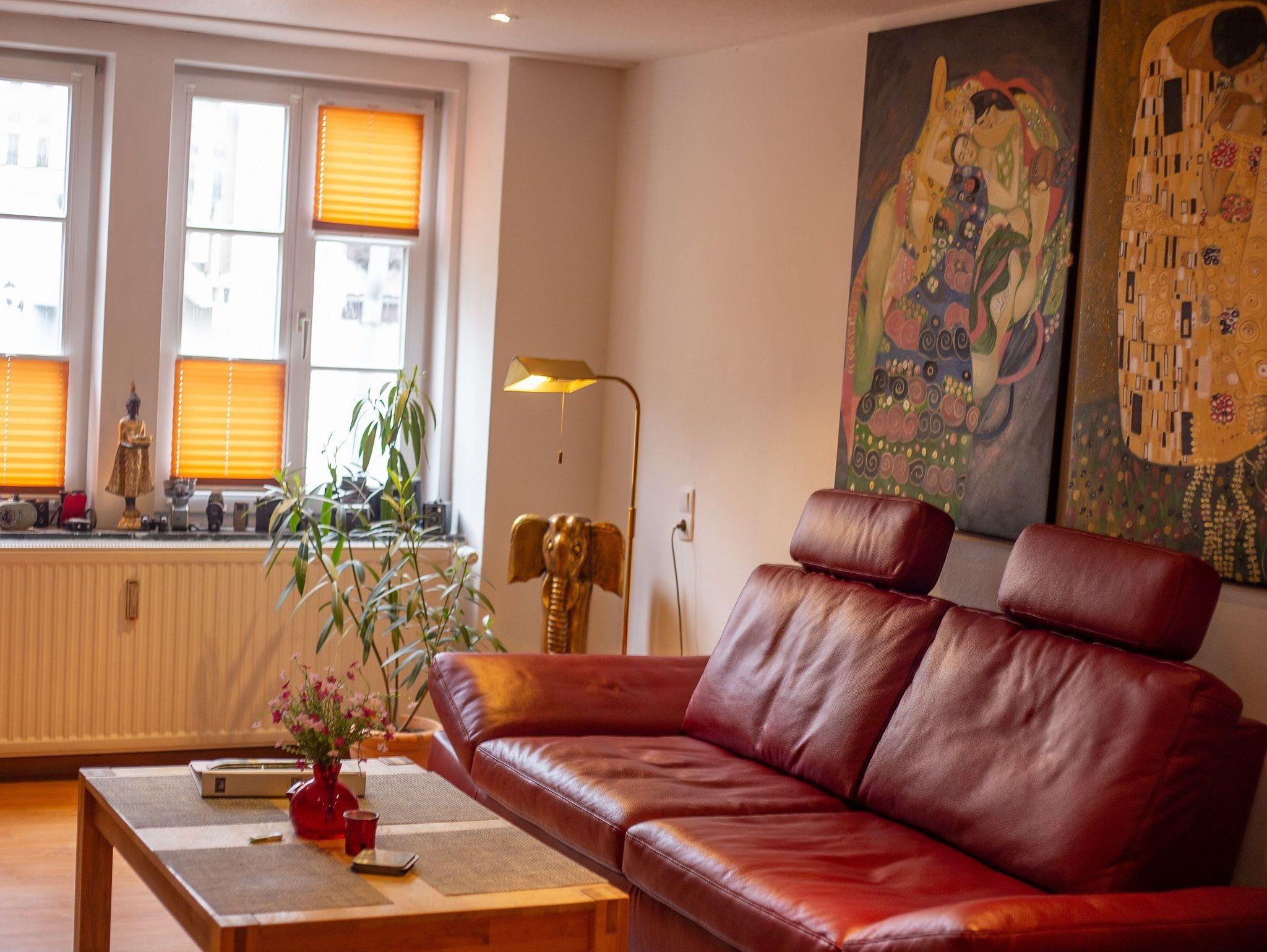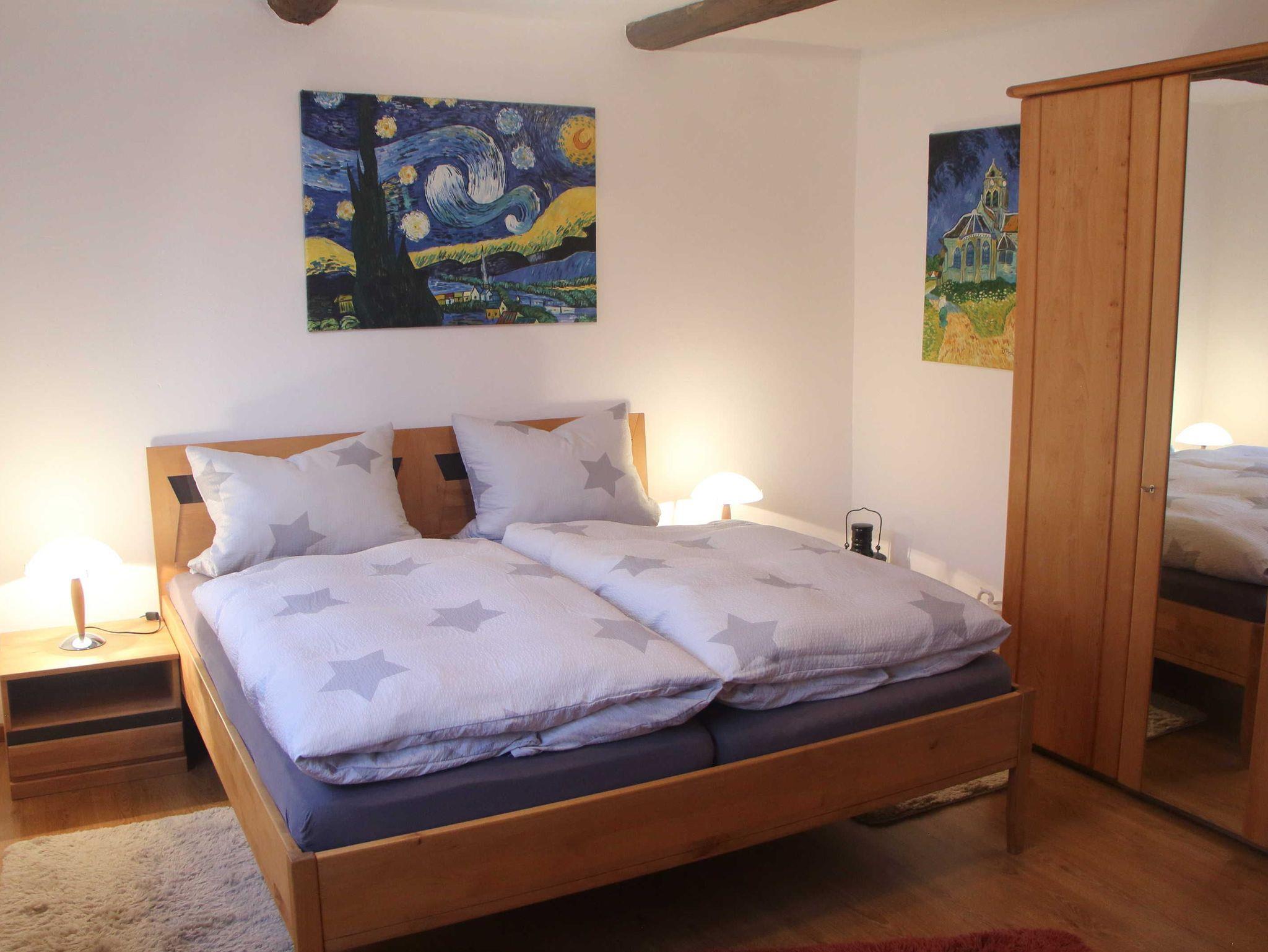 3-Zimmer-Wohnung mkit 100 m², im Erdgeschoss. Komfortabel und geschmackvoll eingerichtet: Wohn-/Esszimmer 40 m² mit Sat-TV (Flachbildschirm), CD und DVD. 2 Zimmer 18 ²2, jedes Zimmer mit 1 Doppelbett (180 cm, Länge 200 cm). Küche 12 m² (Backofen, Geschirrspüler, 4 Glaskeramikherd Platten, Mikrowelle, elektrische Kaffeemaschine) mit Esstisch. Bad/Dusche/WC. Terrasse 15 m², überdacht. Terrassenmöbel, Gartengrill. Zur Verfügung: Waschmaschine, Wäschetrockner. Internet (Wireless LAN, gratis). Bitte beachten: Nichtraucher-Unterkunft. Maximal 1 Haustier/Hund erlaubt. Rauchmelder. Elektrokamin im Wohnzimmer. Zusätzliche Pad-Kaffeemaschine (Pads extra). Wohn- und Essbereich sind durch offenes Fachwerk optisch getrennt. Modern gestaltete Wohnung mit künstlerischem Ambiente.
