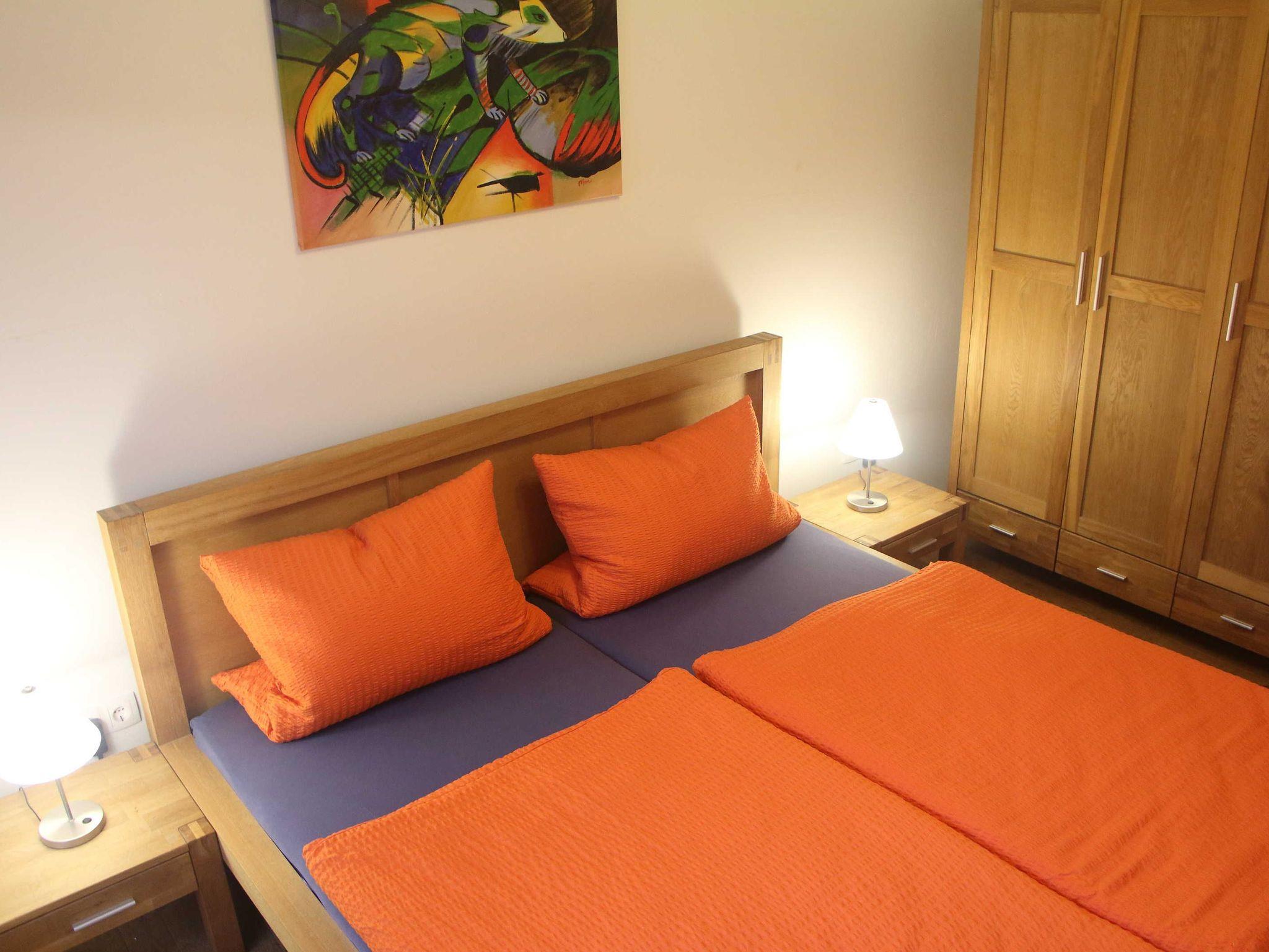 3-Zimmer-Wohnung 100 m², in der 1. Etage. Komfortabel und geschmackvoll eingerichtet: Wohn-/Esszimmer 40 m² mit Sat-TV (Flachbildschirm), CD und DVD. 2 Zimmer 14 m², jedes Zimmer mit 1 Doppelbett (180 cm, Länge 200 cm). Küche (Backofen, Geschirrspüler, 4 Glaskeramikherd Platten, Mikrowelle, elektrische Kaffeemaschine) mit kleiner Bar. Bad/Dusche/WC, Doppelwaschbecken. Grosser Balkon 14 m². Balkonmöbel, Gartengrill (mobil). Zur Verfügung: Waschmaschine, Wäschetrockner. Internet (Wireless LAN, gratis). Bitte beachten: Nichtraucher-Unterkunft. Maximal 1 Haustier/Hund erlaubt. Eigener Eingang, Rauchmelder. Elektrokamin im Wohn-/Esszimmer. Zusätzliche Pad-Kaffeemaschine (Pads extra).