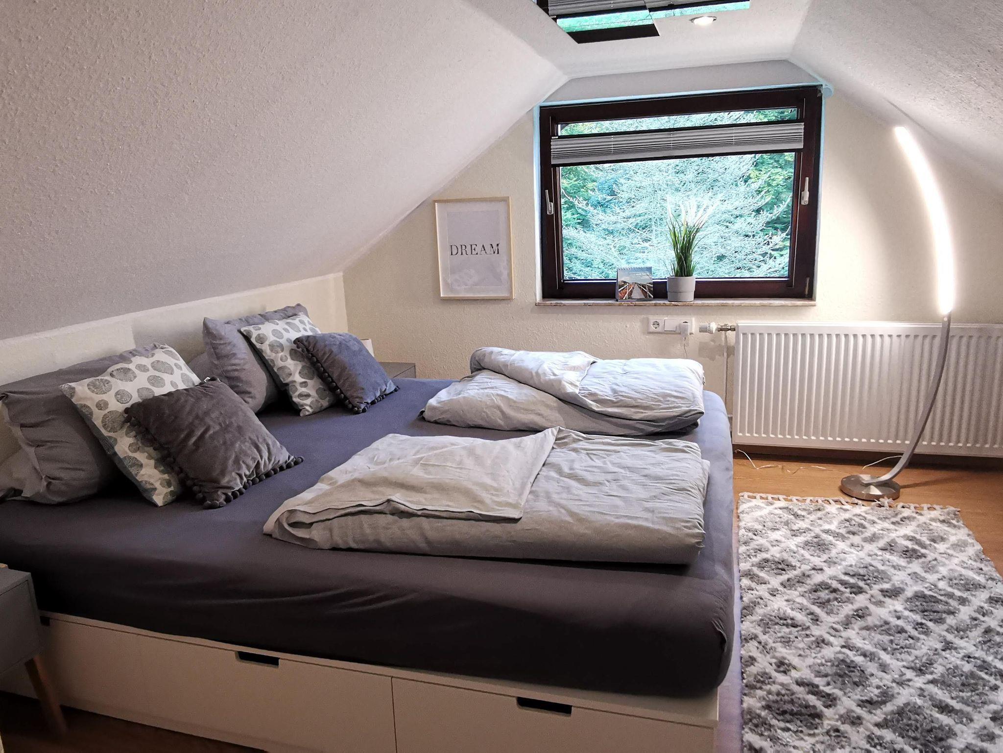 Die geschmackvoll eingerichtete Ferienwohnung befindet sich im Dachgeschoss, mit eigenem Eingang und Balkon, von dort können Sie einen unbeschreiblichen Blick direkt auf den Wald und in die Natur genießen. Die Ferienwohnung wurde 2022 renoviert und mit Liebe und Sinn für Gemütlichkeit eingerichtet ist.