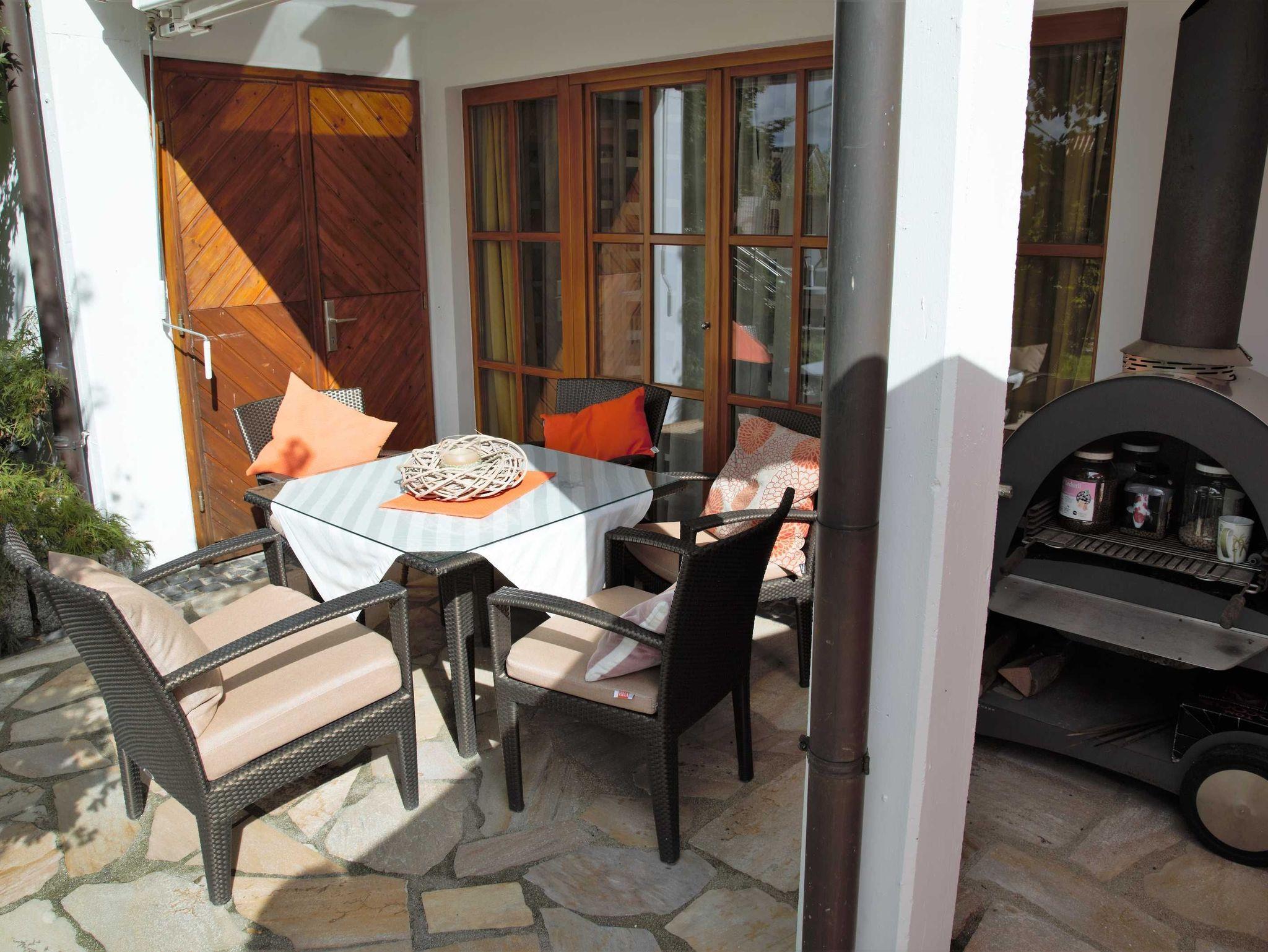 Die Wohnung ist ca. 70 qm groß und komfortabel und gemütlich eingerichtet. Eine hochwertig ausgestattete Küch lädt zum kochen ein. Auf der eigenen Terrasse mit Blick in den herrlich gestalteten, parkähnlich Garten, kann man einen ereignisreichen Tag wunderbar ausklingen lassen. Wer mag nutzt den Grill. Das Schlafzimmer ist gemütlich eingerichtet und mit einem großen Doppelbett ausgestattet. Ein besonderes Highlight in der Wohnung ist sicherlich die Sauna oder die Infrarot-Kabine, die gerne genutzt werden können. Ebenso können Sie ein Herren Mountainbike und ein Damen E-Bike ausleihen und damit die Gegend erkunden.