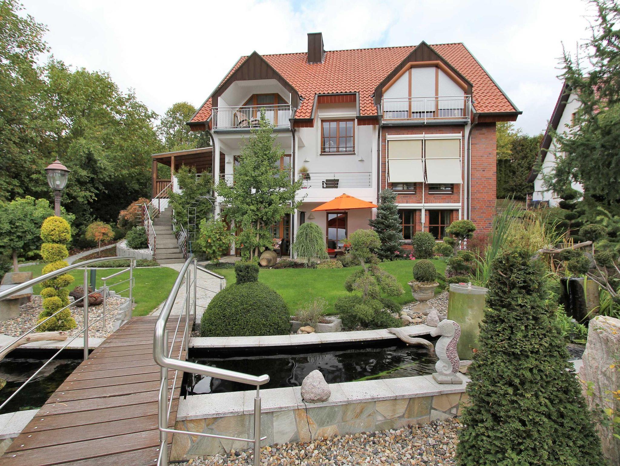 Unser hübsches Klinkerhaus mit parkähnlichem Garten mit Koiteich und Bachlauf befindet sich im malerischen Ortsteil Schwalenberg. Unser Haus verfügt über eine eigene Zufahrt und hat einen eigenen Parkplatz mit Carport. Wir als Ihre Vermieter wohnen ebenfalls mit im Haus und haben immer ein offenes Ohr für Wünsche oder Fragen. Genießen Sie den traumhaften Blick über die Lippische Toskana und starten Sie Ihre Ausflüge in die Umgebung von hier. Es ist alles innerhalb von 30 Minuten erreichbar. Wir freuen uns auch Ihren Besuch! Ihre Familie Rubel