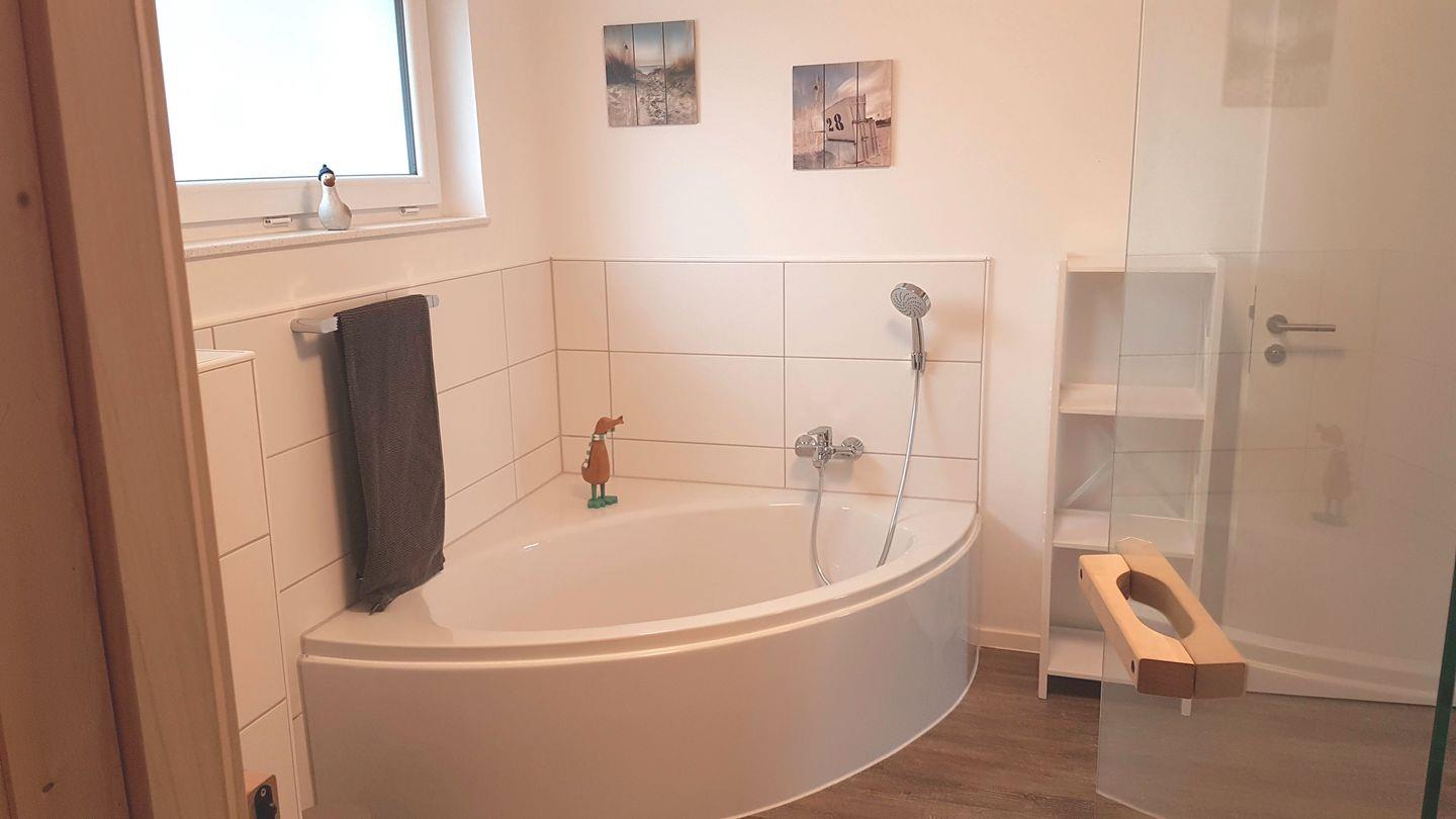 Im Apartment sind zwei Fernseher mit Satellitenempfang vorhanden. In jedem Schlafzimmer stehen Ihnen ein Doppelbett mit Nachtkonsolen und ein Kleiderschrank zur Verfügung. Die Einrichtung ist modern und hochwertig. An stürmischen oder regnerischen Tagen wird das Badezimmer mit Sauna, ebenerdiger Dusche und Badewanne zum Wellnessbereich, der den nötigen Komfort für die Erholung bietet. Ein möblierter Balkon mit Strandkorb lädt zum Verweilen ein. Ein Kleinkinderreisebett und ein Kinderhochstuhl sind ebenfalls vorhanden.