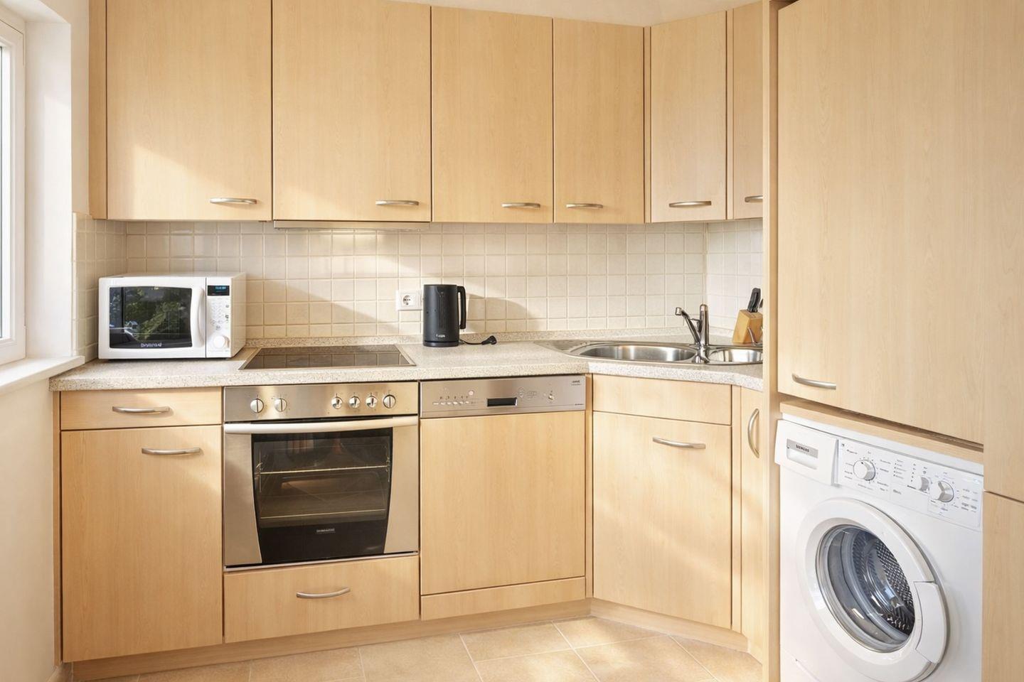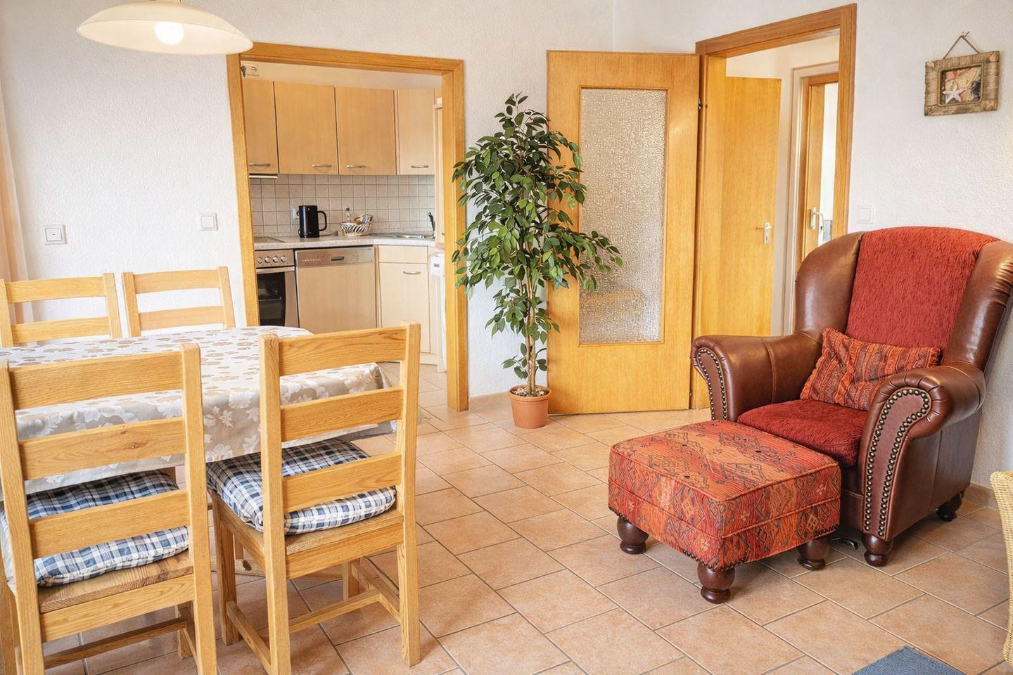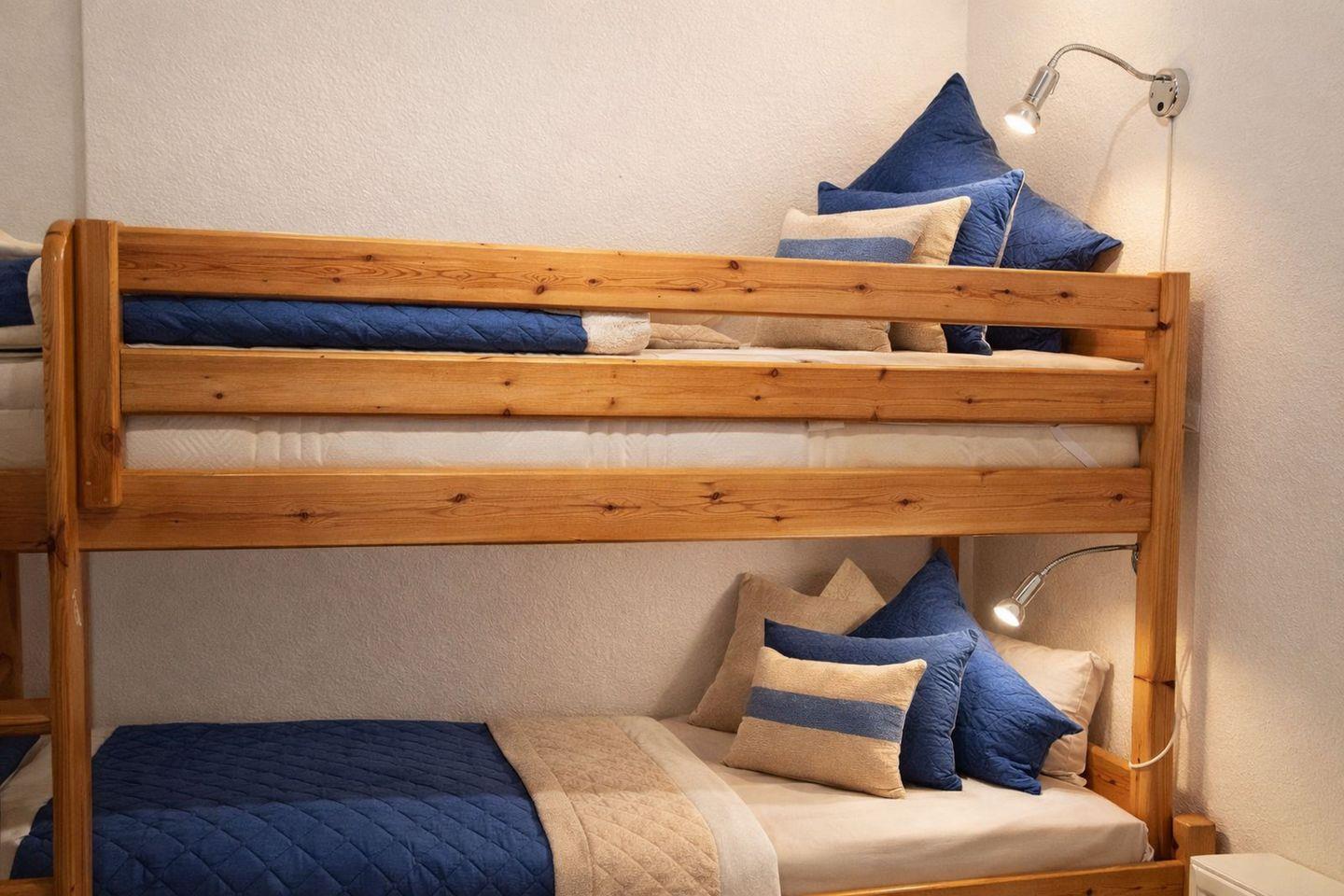 Die Küche ist bestens ausgestattet und lässt keine Wünsche offen. Geschirrspülmaschine, Mikrowelle, Cerankochfeld mit Backofen, Waschmaschine, Kaffeemaschine, Wasserkocher und Toaster sorgen dafür, dass Sie sich im Urlaub ganz flexibel selbst versorgen können. Ob gemeinsames Frühstück oder gemütliches Abendessen – hier macht Kochen Freude. Das Kinderzimmer ist mit einem Etagenbett sowie einem zusätzlichen Einzelbett eingerichtet und bietet ausreichend Platz für kleine und größere Gäste. Auch an die jüngsten Urlauber ist gedacht: Ein Reisebett und ein Hochstuhl stehen selbstverständlich bereit.