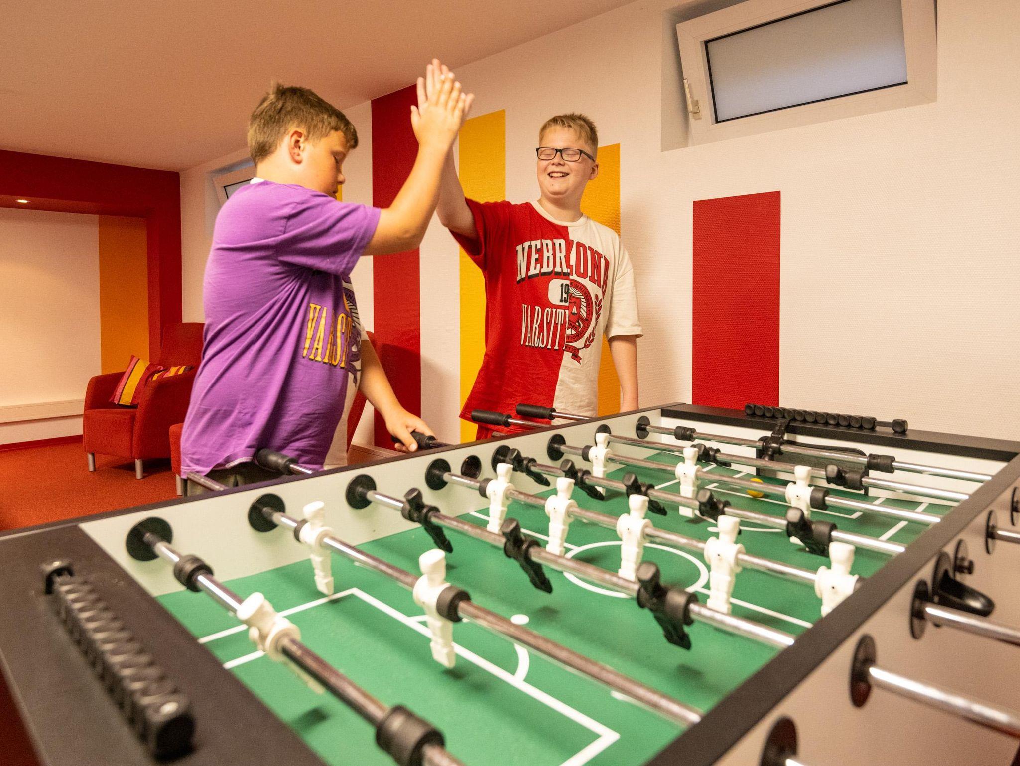 Was erwartet mich zusätzlich im Ferienpark? Neben Entspannung in der Sauna und Work-outs im Fitnessraum erwarten Sie ein Mini-Bibliothek, ein DVD-Verleih, Parkplätze direkt im Ferienpark, ein Spielzimmer mit Kicker und Tischtennis-Platte, ein Fahrradkeller und ein immer offenes Ohr für Ihre Anliegen.