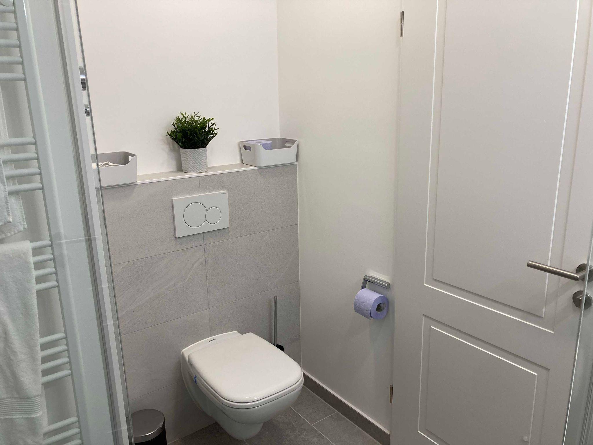 Einraumferienwohnung (ca. 30 m2) im EG mit Süd-Westterrasse (Weber Gasgrill), vollausgestatteter Küche und Duschbad (Walk-in-Dusche).