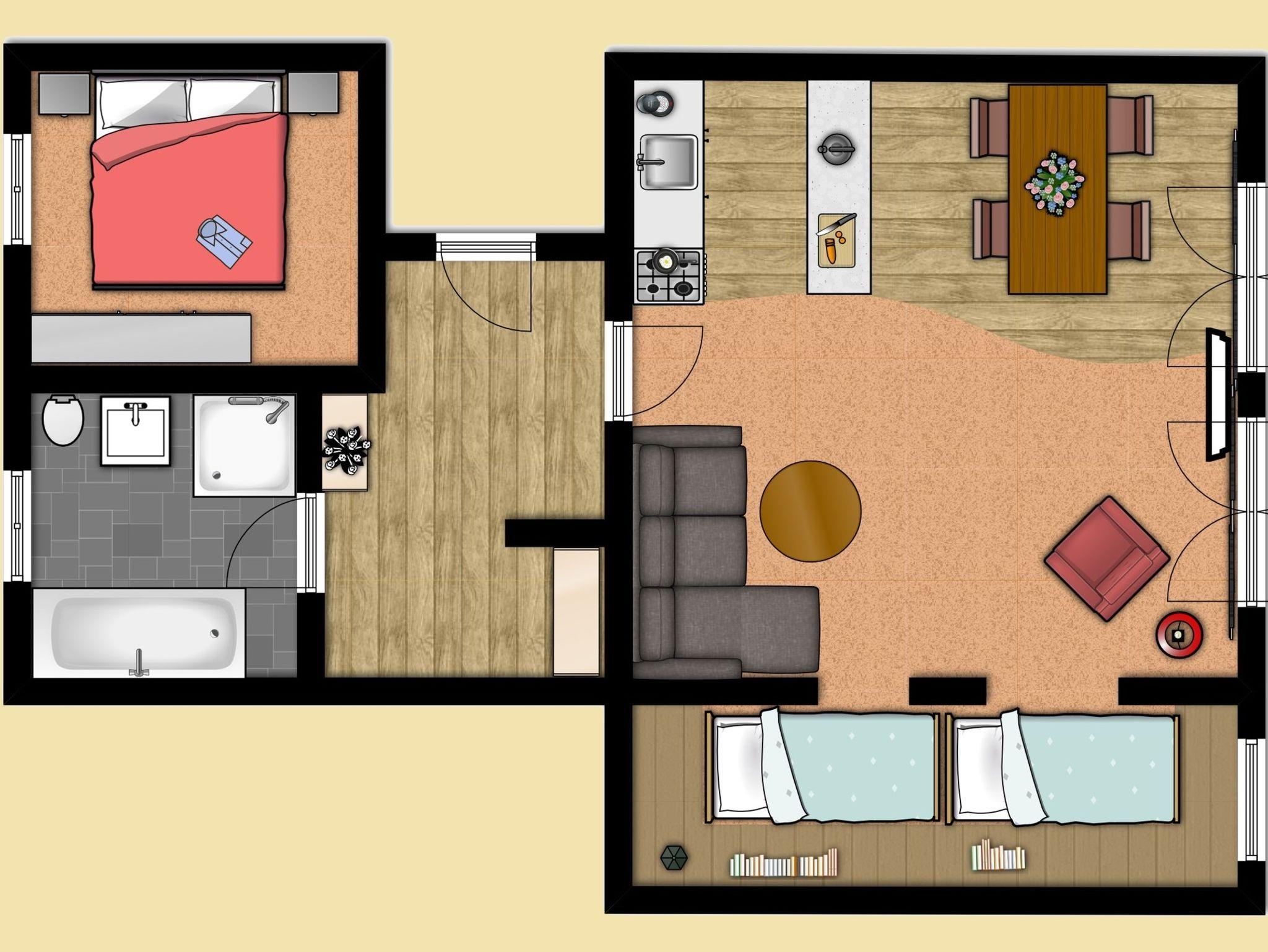 Die Nichtraucherwohnung ist geschmackvoll eingerichtet. Sie verfügt über eine Küchenzeile, ein Schlafzimmer, und ein Bad mit Wanne, Dusche und WC.