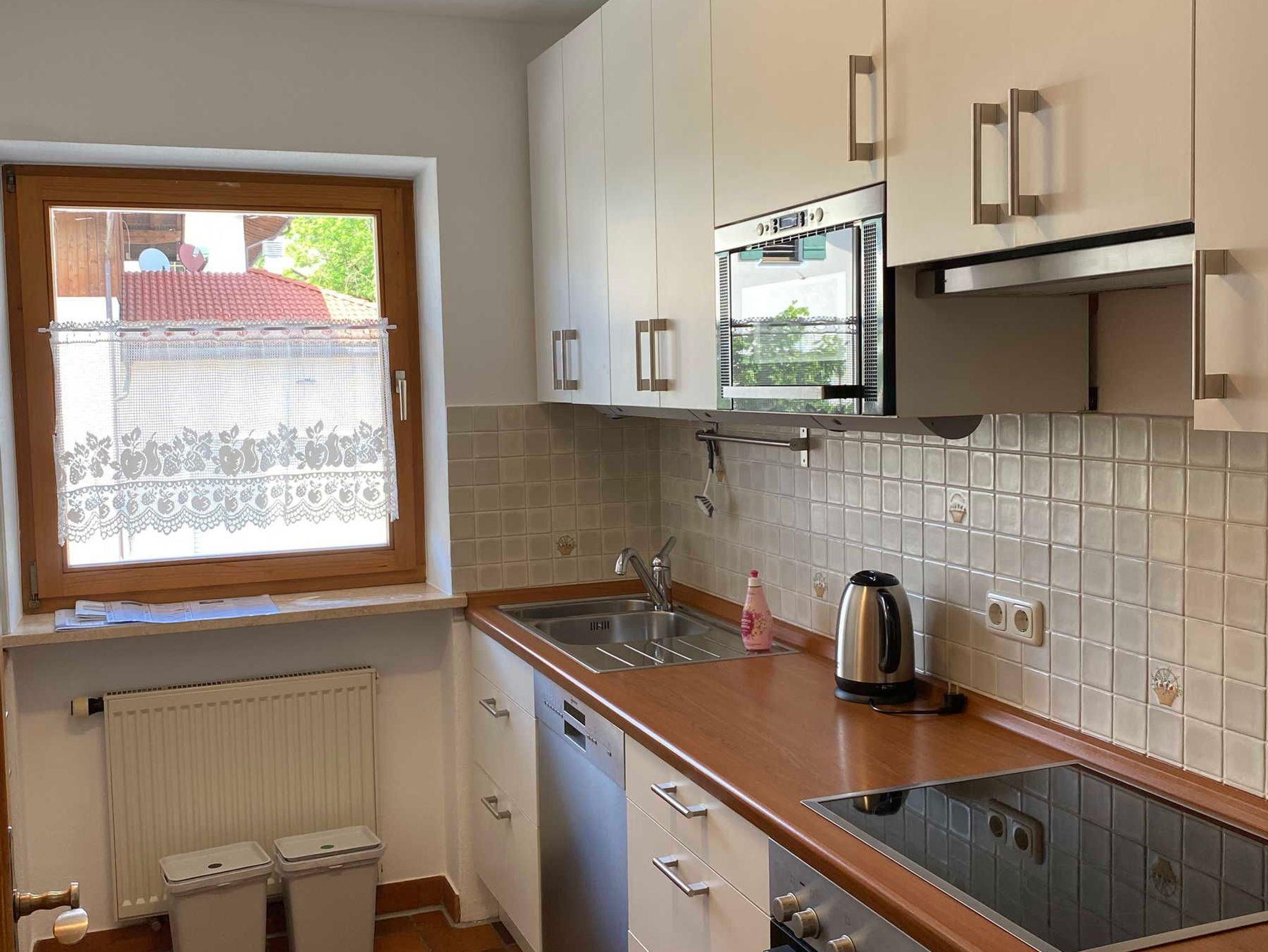 Das großzügige, helle Wohnzimmer bietet aus jedem Winkel eine attraktive Aussicht auf die Berge und Natur, eine vollwertige Küche, Diele, modernes Schlafzimmer mit Boxspringbett, neues modernes Badezimmer mit Badewanne, Dusche und WC garantiert Ihnen erholsames Ferienwohnen mit dem Wohnen wie Zuhause-Gefühl.