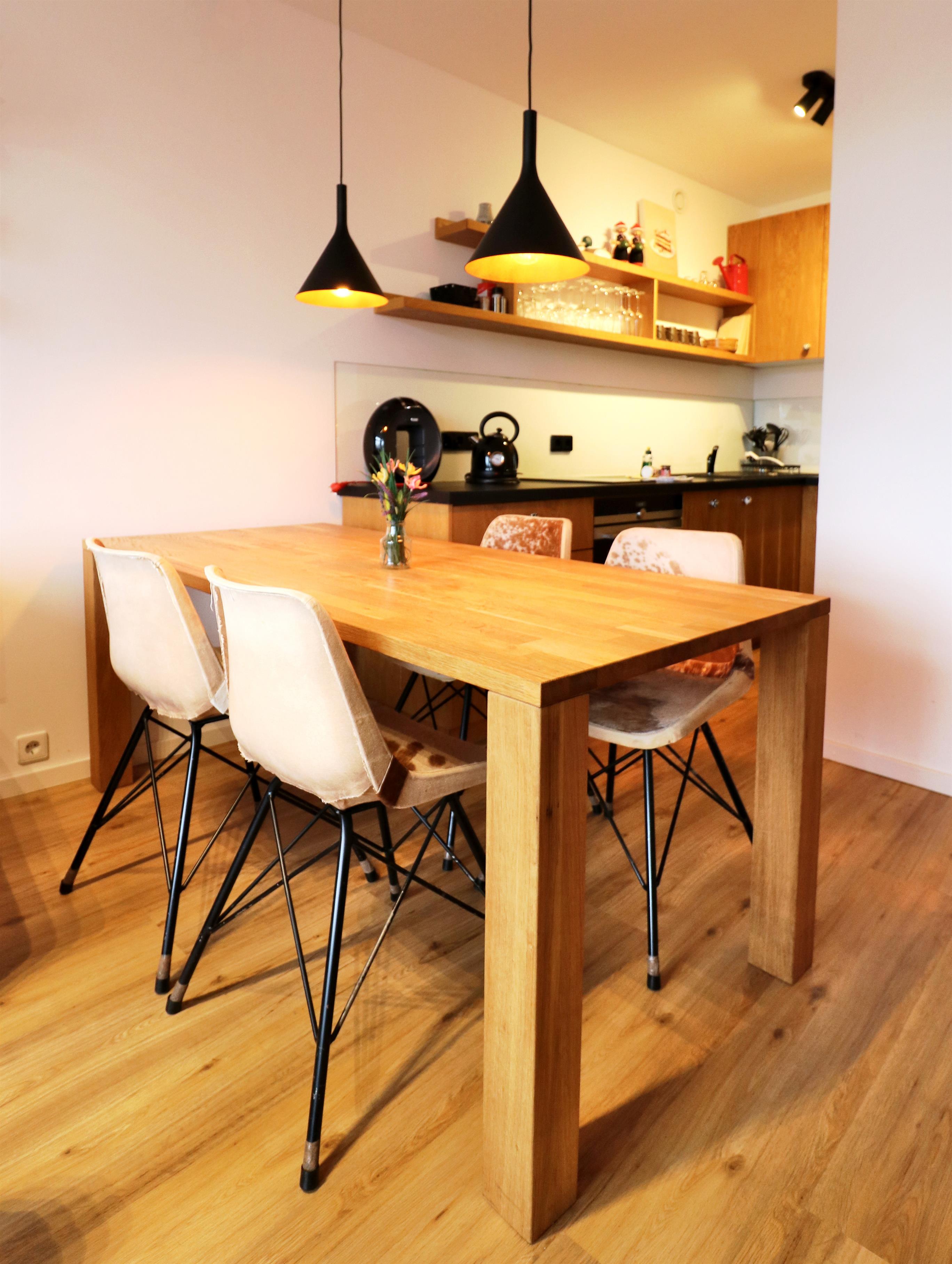 - a cosy living and dining room with high-quality sofa bed (140x200cm) convertible into a comfortable bed, dining area for 4 people and flatscreen TV.