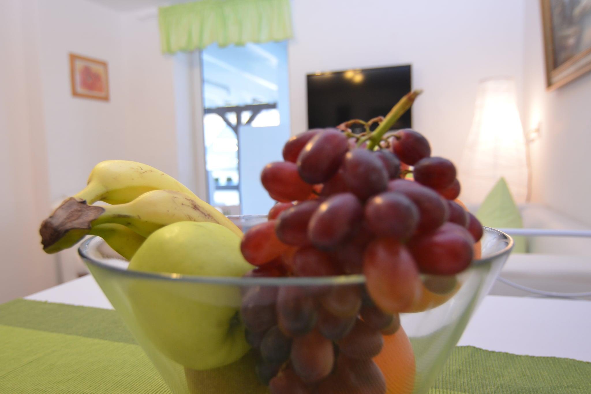 Stueetage: (gang, tekøkken(komfur(Komfur med to kogeplader), kaffemaskine(kaffetragt), mikrobølgeovn, køle-fryseskab), stue / spisestue(Fjernsyn(parabol)), soveværelse(dobbeltseng), soveværelse(dobbeltseng), badeværelse(bruser, håndvask, toilet)) sofastue, grill, varme(central), terrasse(deles med andre gæster), havemøbler, parkering