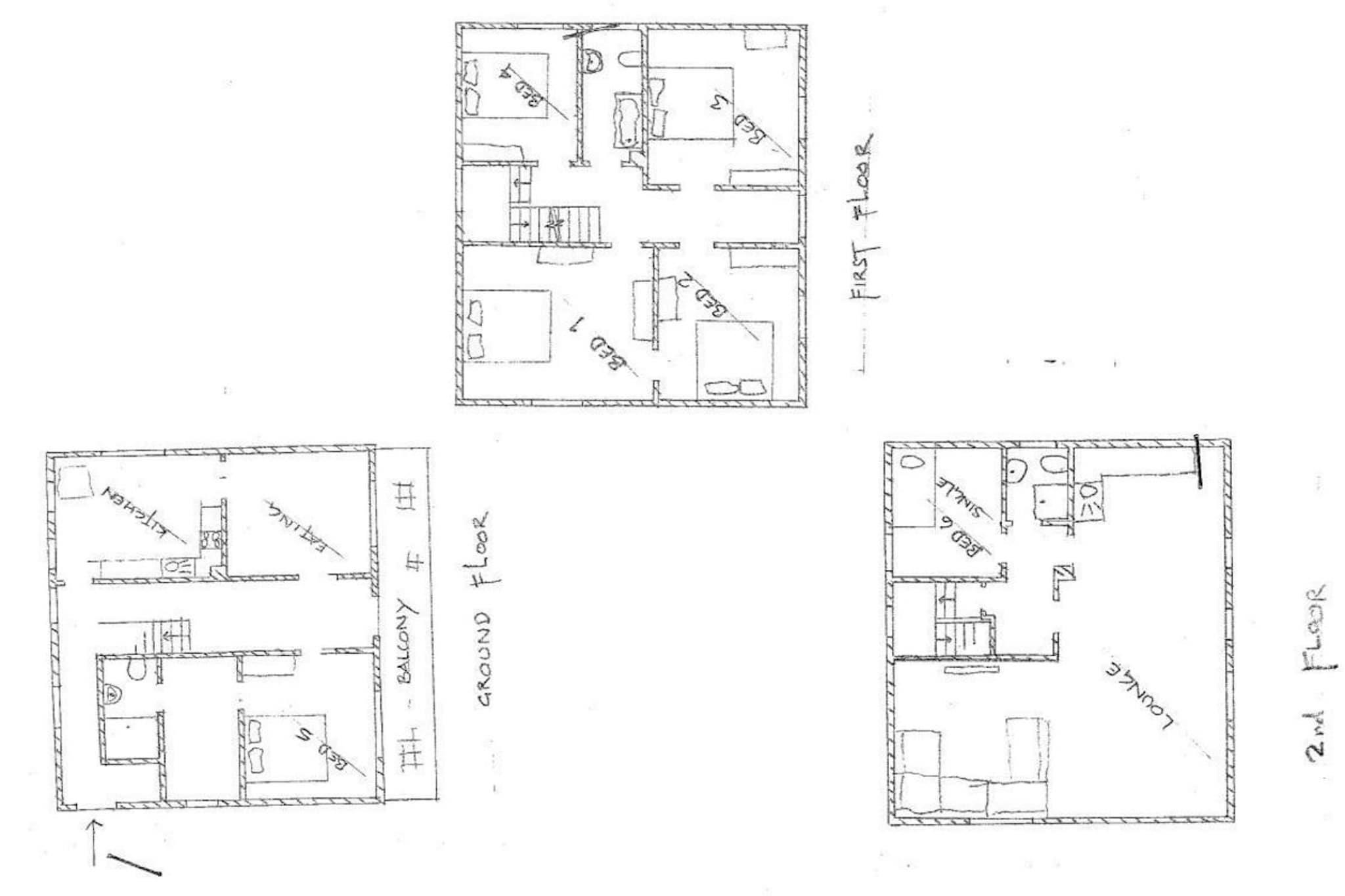 Stueetage: (Indgang , gang, spisestue(spisebord), Køkken(elkedel, brødrister, komfur(glaskeramisk), kaffemaskine, ovn, mikrobølgeovn, opvaskemaskine , køleskab, fryser), soveværelse(dobbeltseng), soveværelse(dobbeltseng), badeværelse(bruser, håndvask, toilet, føntørrer)) På 1. etage: (soveværelse(dobbeltseng), soveværelse(dobbeltseng), soveværelse(dobbeltseng), badeværelse(badekar, håndvask, toilet)) På 2. etage: (Stue(Fjernsyn, spisebord, sofahjørne), tekøkken, soveværelse(enkeltseng), badeværelse(bruser, håndvask, toilet)) tørretumbler, tremmeseng, vaskemaskine, balkon, 2x parkering, barnestol