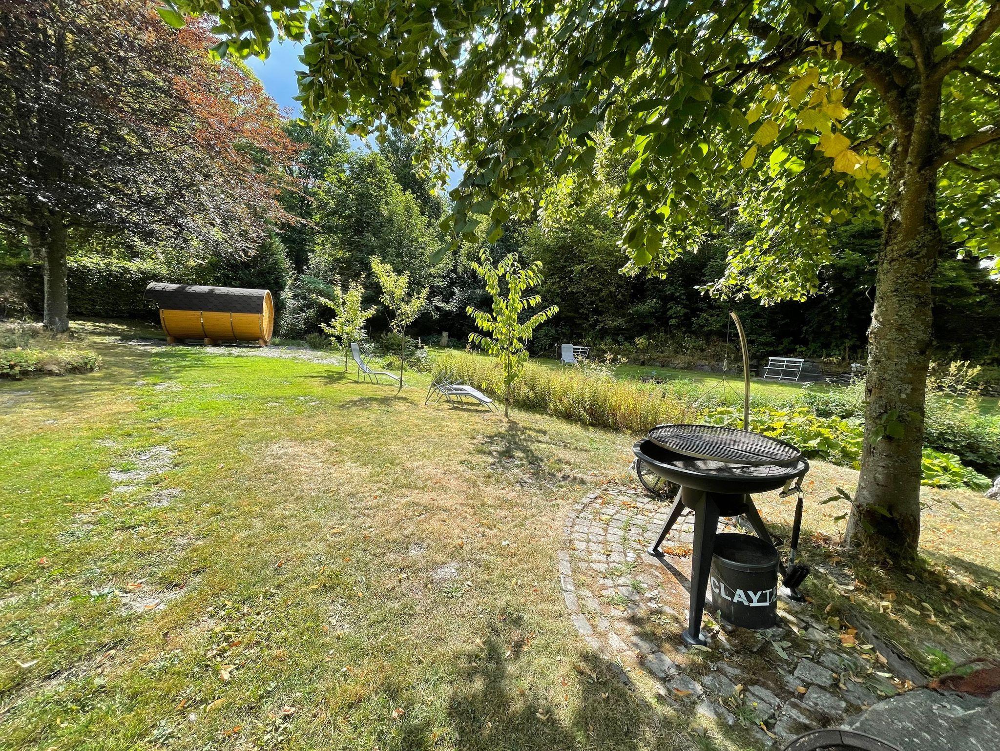 Zusätzlich bietet der großzügige Garten: Sonnenliegen, Grillmöglichkeiten, einen Bachlauf mit Zugang, Sitzgelegenheiten, eine Feuerstelle und gegen Aufpreis eine herrlich duftende Zirbenholz-Fasssauna.