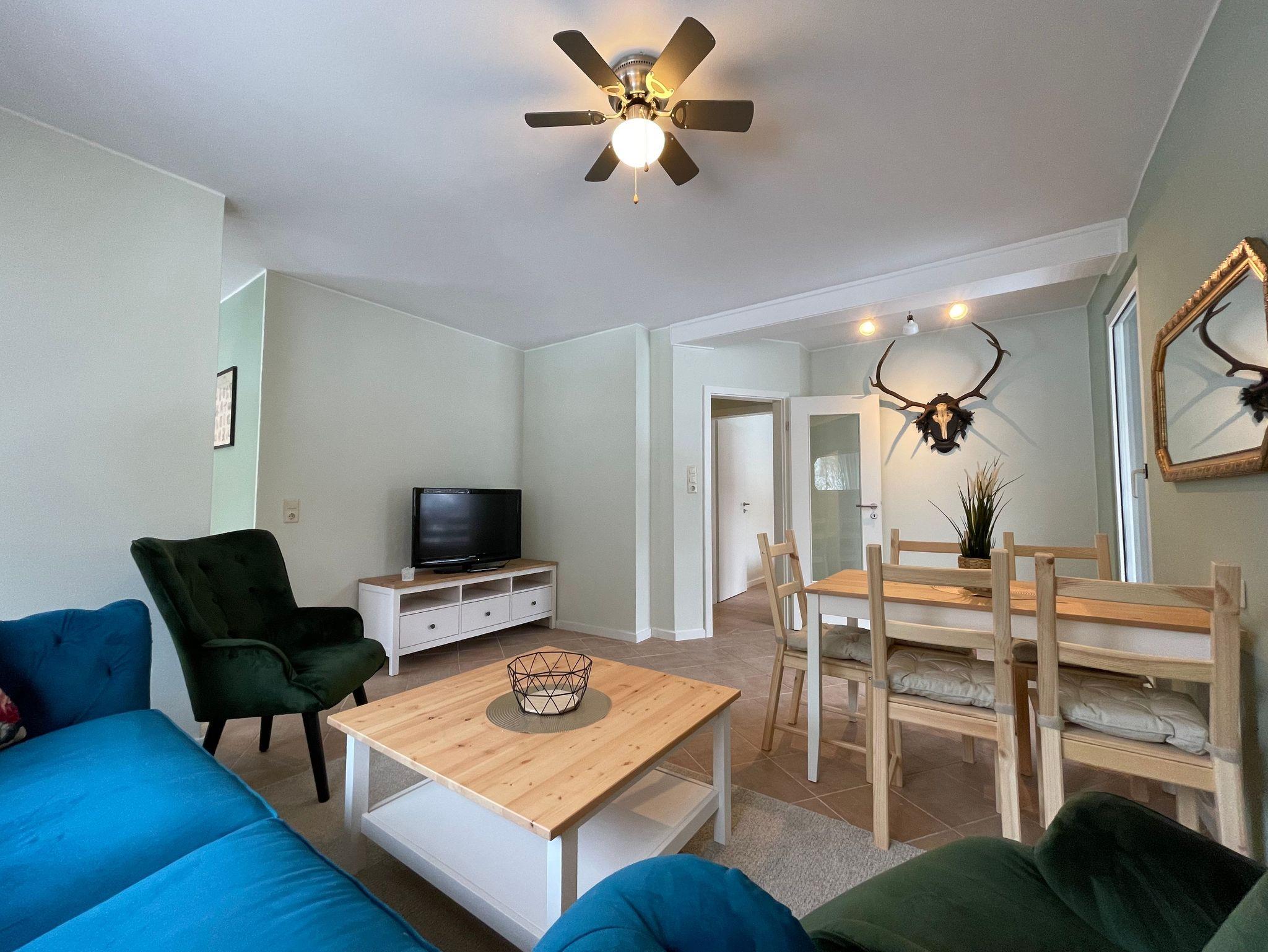 Die wunderschöne und helle Ferienwohnung Hirsch verfügt über einen großen Wohn/Essbereich, eine vollausgestattete Küche mit allen Utensilien, die man zum Kochen benötigt, ein Schlafzimmer mit Doppelbett und geräumigen Kleiderschrank, ein weiteres Schlafzimmer mit einem Etagenbett (unten 2 Personen, oben 1 Person) und ein Badezimmer mit Dusche, WC und Waschbecken. Auf Wunsch kann ein Babybett und/oder ein Kinde Hochstuhl angefordert werden.