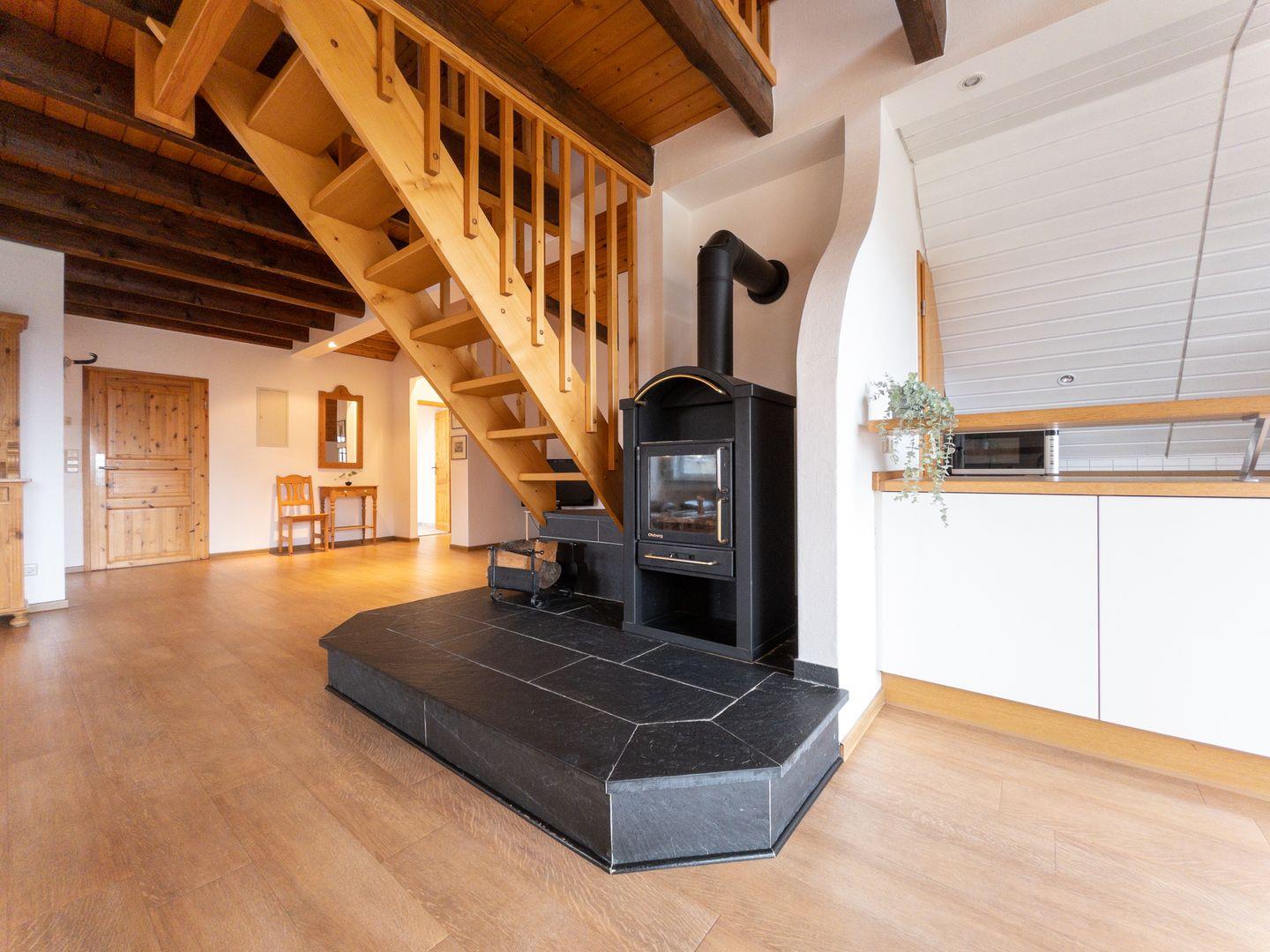 180 qm, 2. und 3. Etage, Balkon, 4 Schlafräume (3 Schlafzimmer mit Doppelbett, eins mit 2 Einzelbetten), sehr große Wohnküche, Kaminofen, Bad mit Wanne & Dusche, Bad mit Dusche, für 6 Erwachsene und 2 Kinder