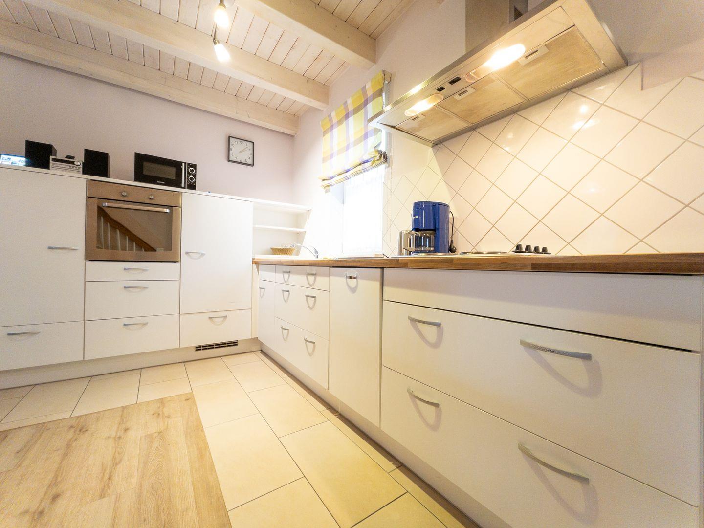90 qm, Terrasse, 3 Schlafräume (das Elternschlafzimmer mit Doppelbett, das Kinderzimmer mit 2 Einzelbetten und im EG ein Zimmer mit 160 cm breitem Bett), Wohnküche, Bad mit Dusche und Wanne, zusätzliches WC im Erdgeschoss