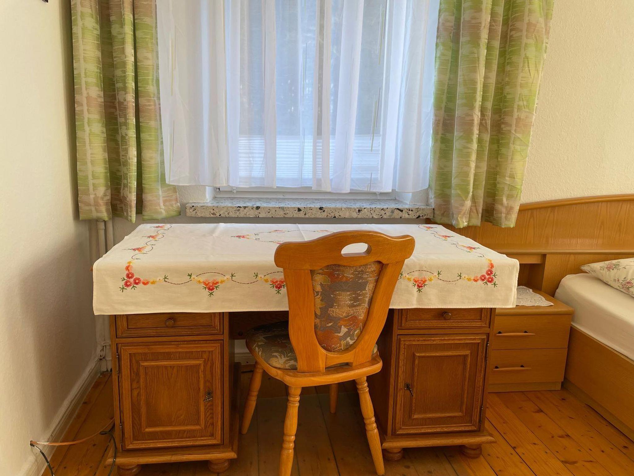 Gemütliche Ferienwohnung mit schöner Aussicht für 3 Personen. Die Ferienwohnung verfügt über eine komplett eingerichtete Küche, ein großes Bad mit Badewanne und Dusche, ein Wohnzimmer mit Flachbildfernseher sowie ein Schlafzimmer mit einem Doppelbett und einem Einzelbett.