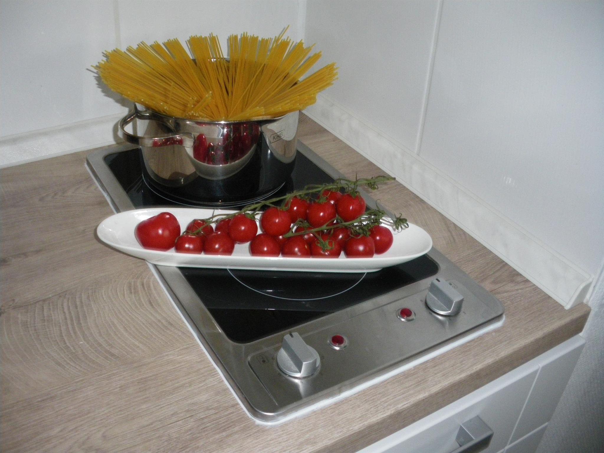 Die modern und hell ausgestattete Ferienwohnung für bis zu 5 Personen verfügt über eine voll ausgestattete Küchenzeile im gemütlich eingerichtetem Wohn-Essbereich, ein Schlafzimmer mit einem Doppel- und einem Einzelbett sowie ein Bad mit Dusche und WC. Eine zusätliche Schlafgelegenheit bietet das ausziehbare Schlafsofa im Wohnbereich.