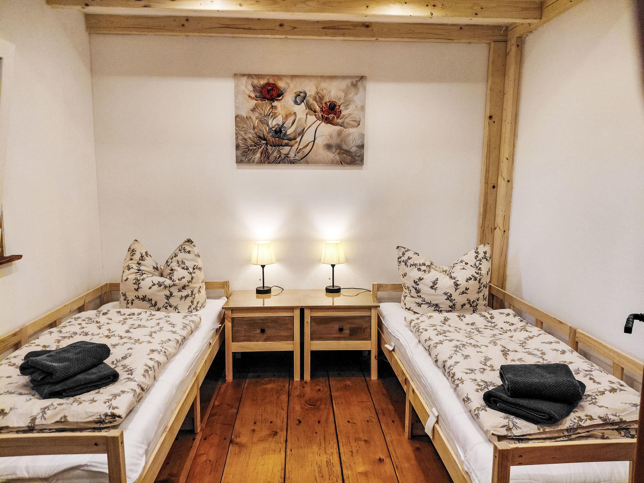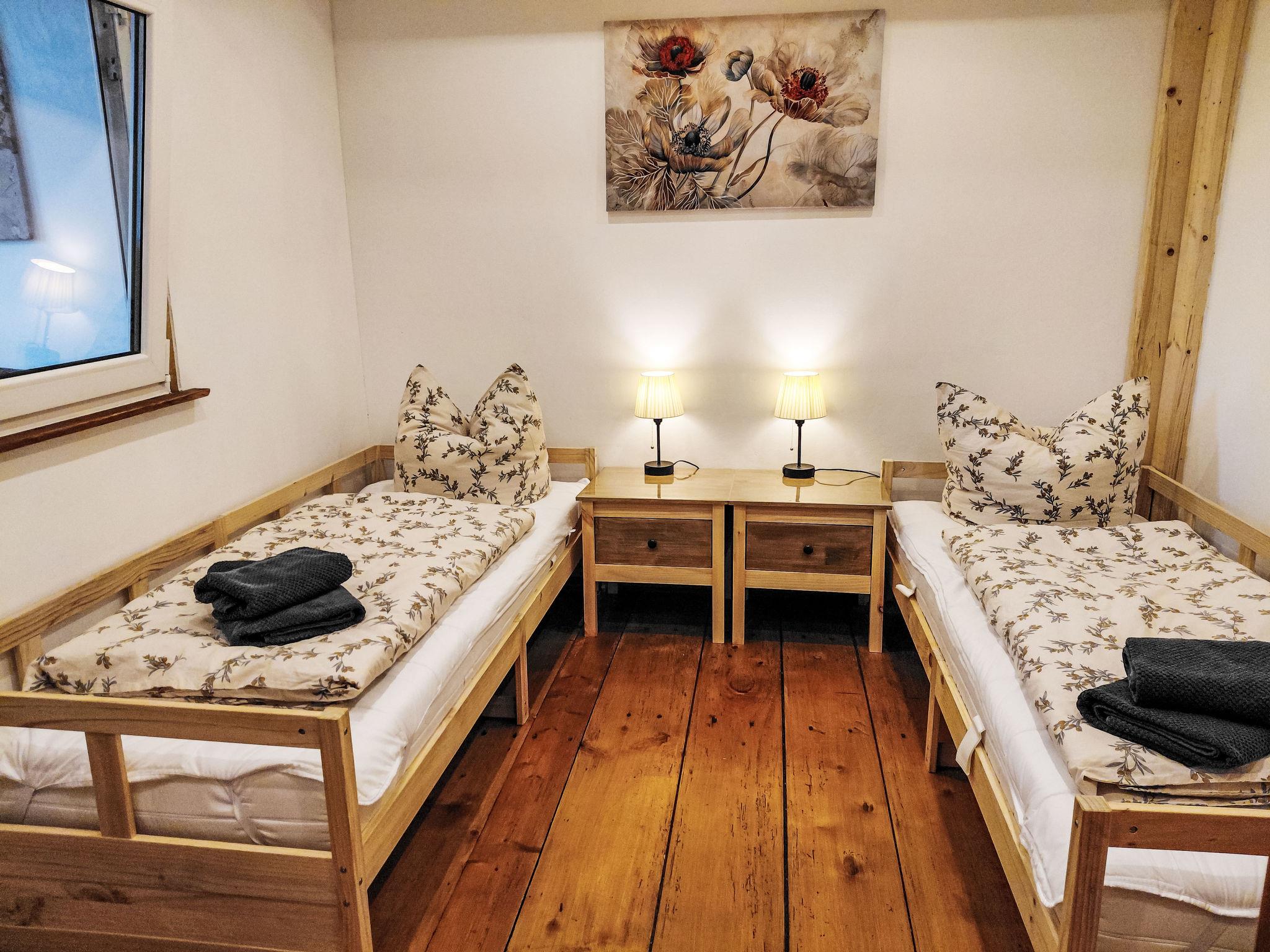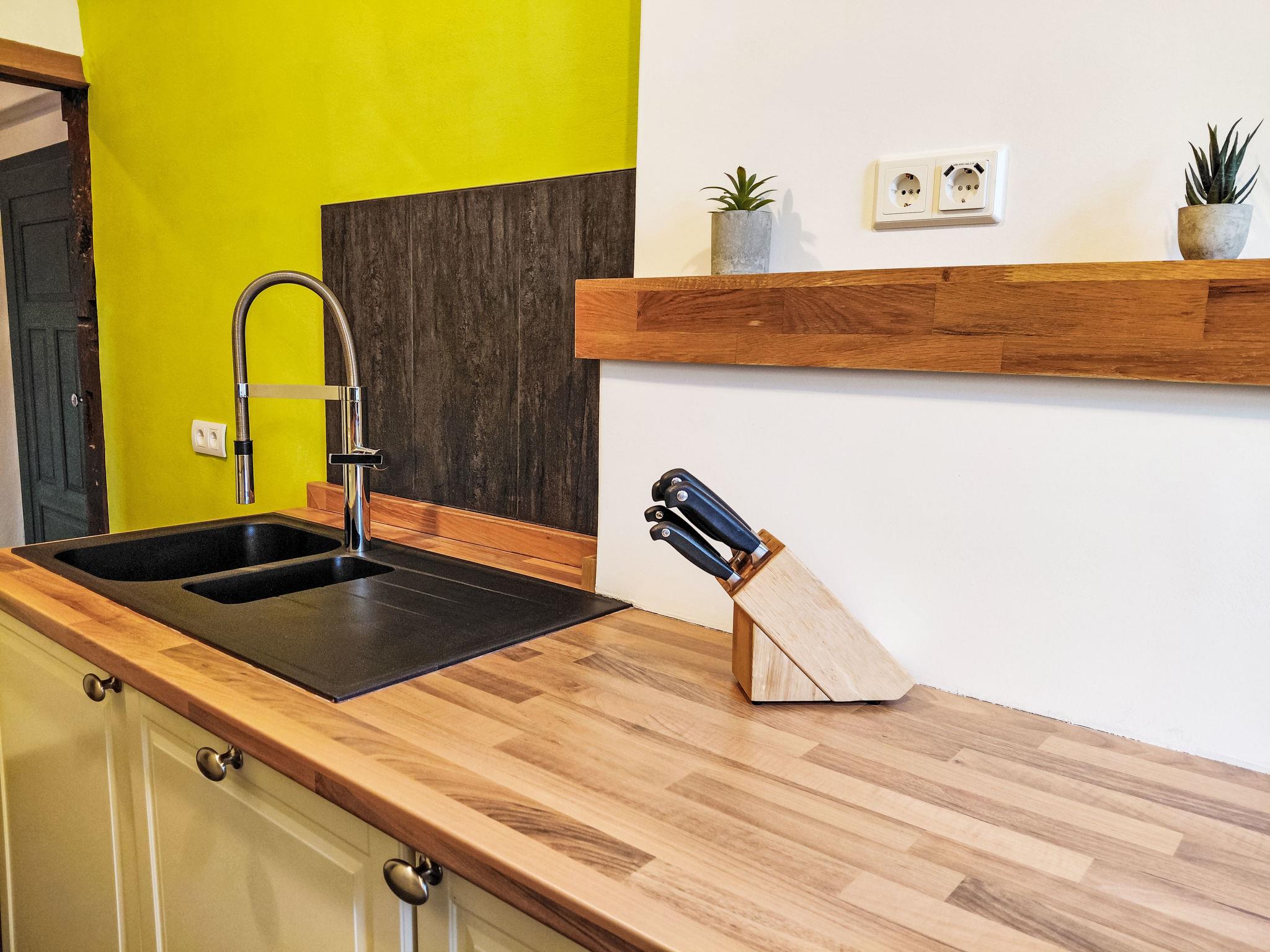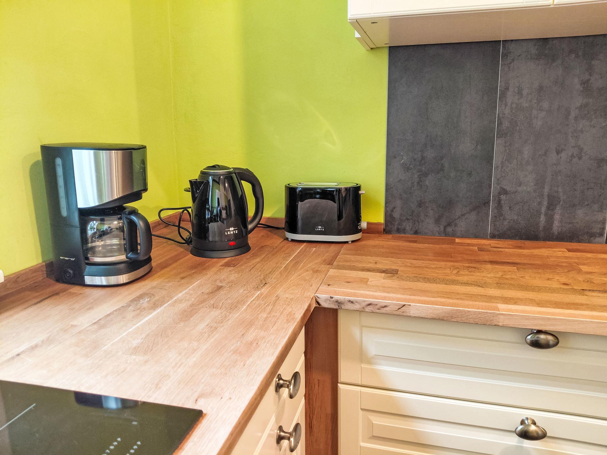 3-room apartment 85 m2, on the ground floor. Rustic and cosy furnishings: living/dining room with dining table and digital TV. 1 room with 1 double bed (180 cm, length 200 cm). 1 small room, window onto the living room with 2 beds (80 cm, length 200 cm). Kitchen (oven, dishwasher, 4 induction hot plates, toaster, kettle, microwave, freezer, electric coffee machine). Shower/WC. Gas heating. View of the countryside and the forest. Facilities: children's high chair, baby cot. Internet (WiFi, free). Please note: non-smokers only. Smoke alarm, fire extinguisher.