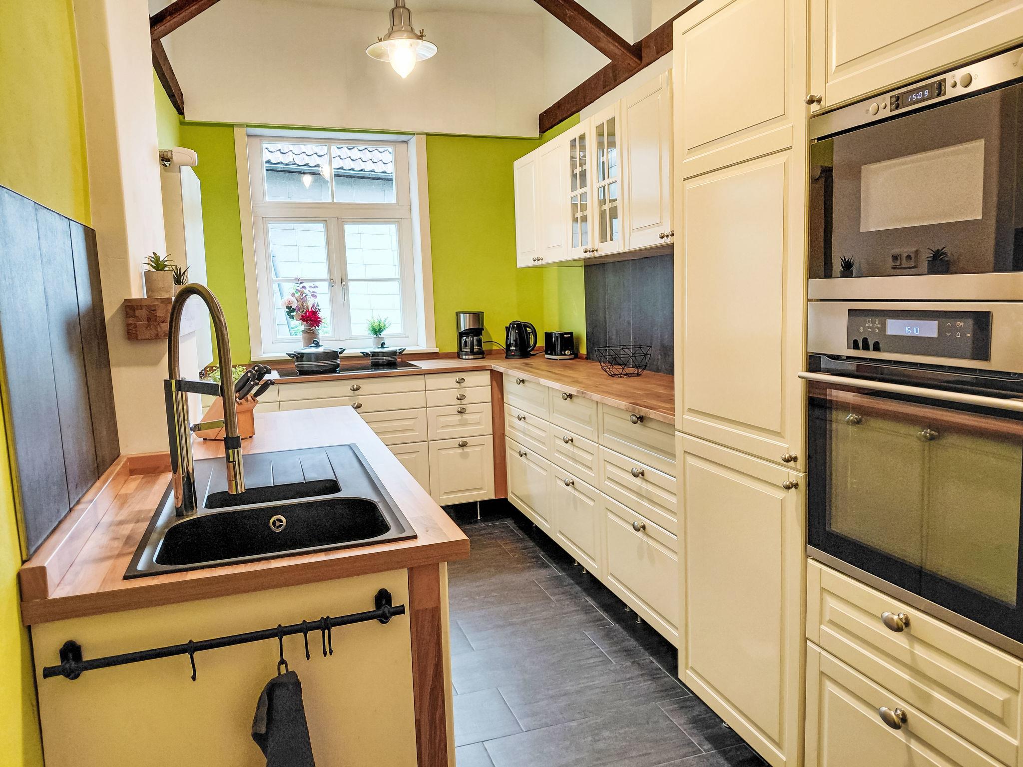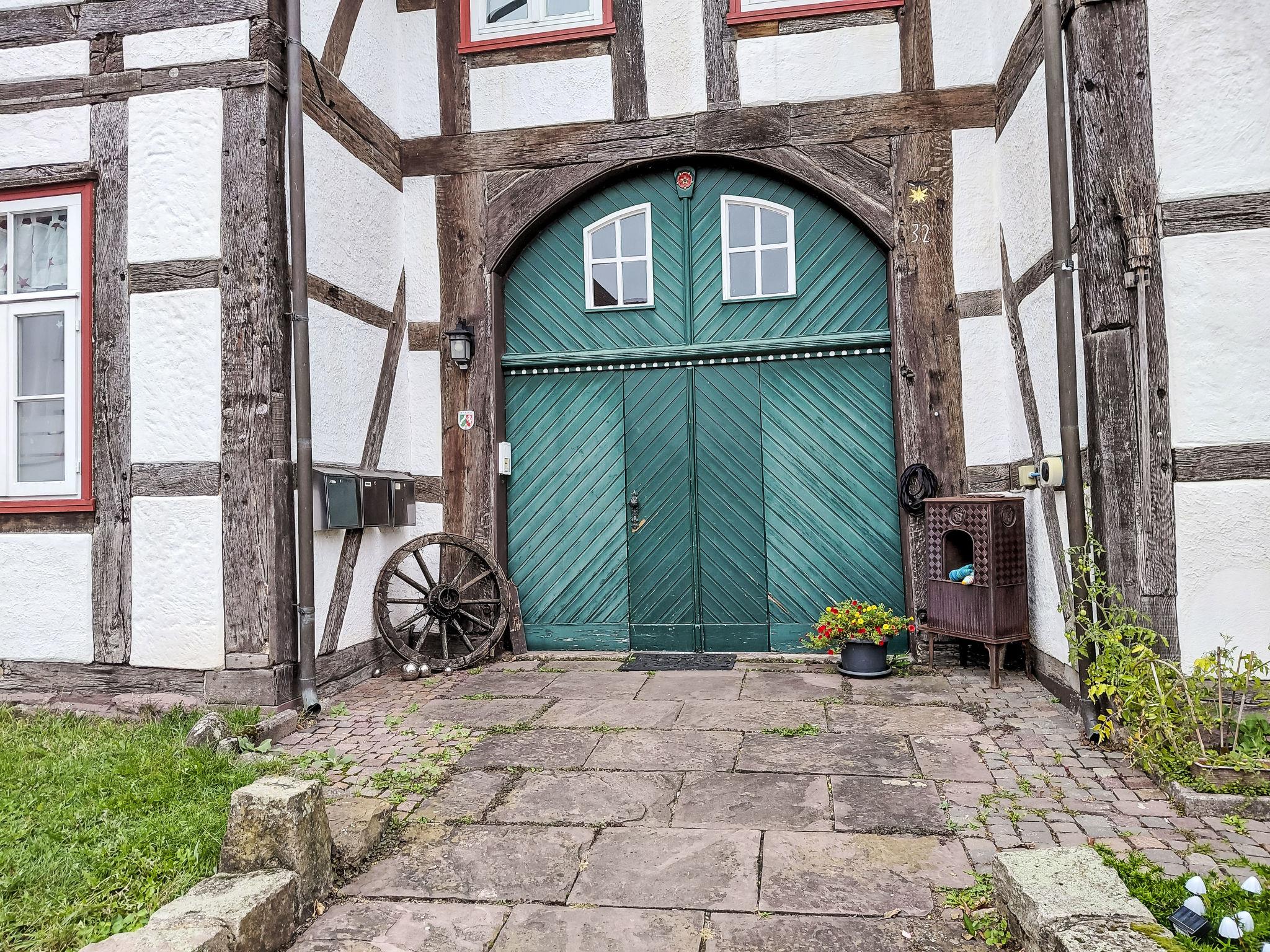 Beautiful, historical apartment house "Schwalenberger Land", from the 17th century. In the centre of Schwalenberg, 300 m from the edge of the forest, 7 km from the lake. In the house: storage room for bicycles, central heating system. Public parking on the road. Shop 250 m, restaurant 10 m, bus stop 250 m, railway station "Schieder" 7 km, outdoor swimming pool 6 km, indoor swimming pool 8 km. Golf course (18 hole) 12 km, tennis 6 km, walking paths from the house 200 m, children's playground 500 m. Nearby attractions: Externsteine 25 km, Hermannsdenkmal 26 km, Welterbe Corvey 28 km. Please note: car recommended. Property slopes steeply towards the rear.