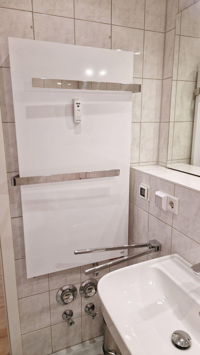 Das Schlafzimmer ist hell und mit einem Boxspringbett und Kleiderschrank möbliert. Im Badezimmer finden Sie eine Dusche, einen Waschtisch, Föhn und WC.