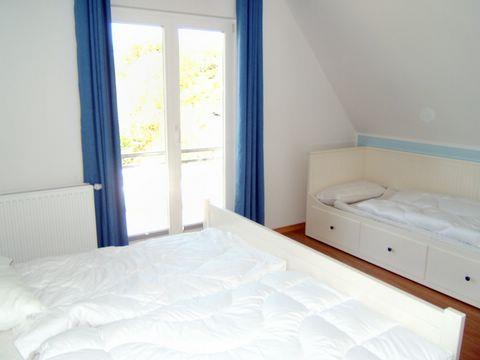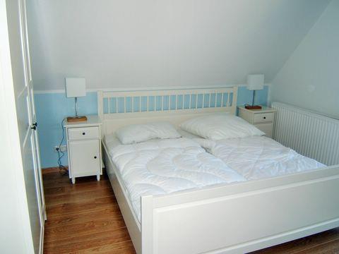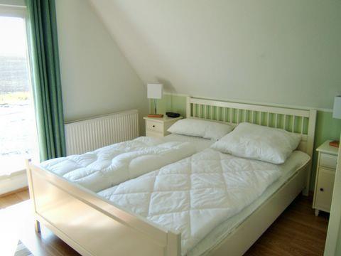 Zwei separate Schlafzimmer, jeweils mit einem Doppelbett und Stauraum für Ihre Garderobe, sorgen für entspannte Nächte. In einem Schlafzimmer steht ein zusätzliches Einzelbett zu Ihrer Verfügung. Eine weitere Person findet einen komfortablen Schlafplatz auf der Schlafcouch im Wohnzimmer.