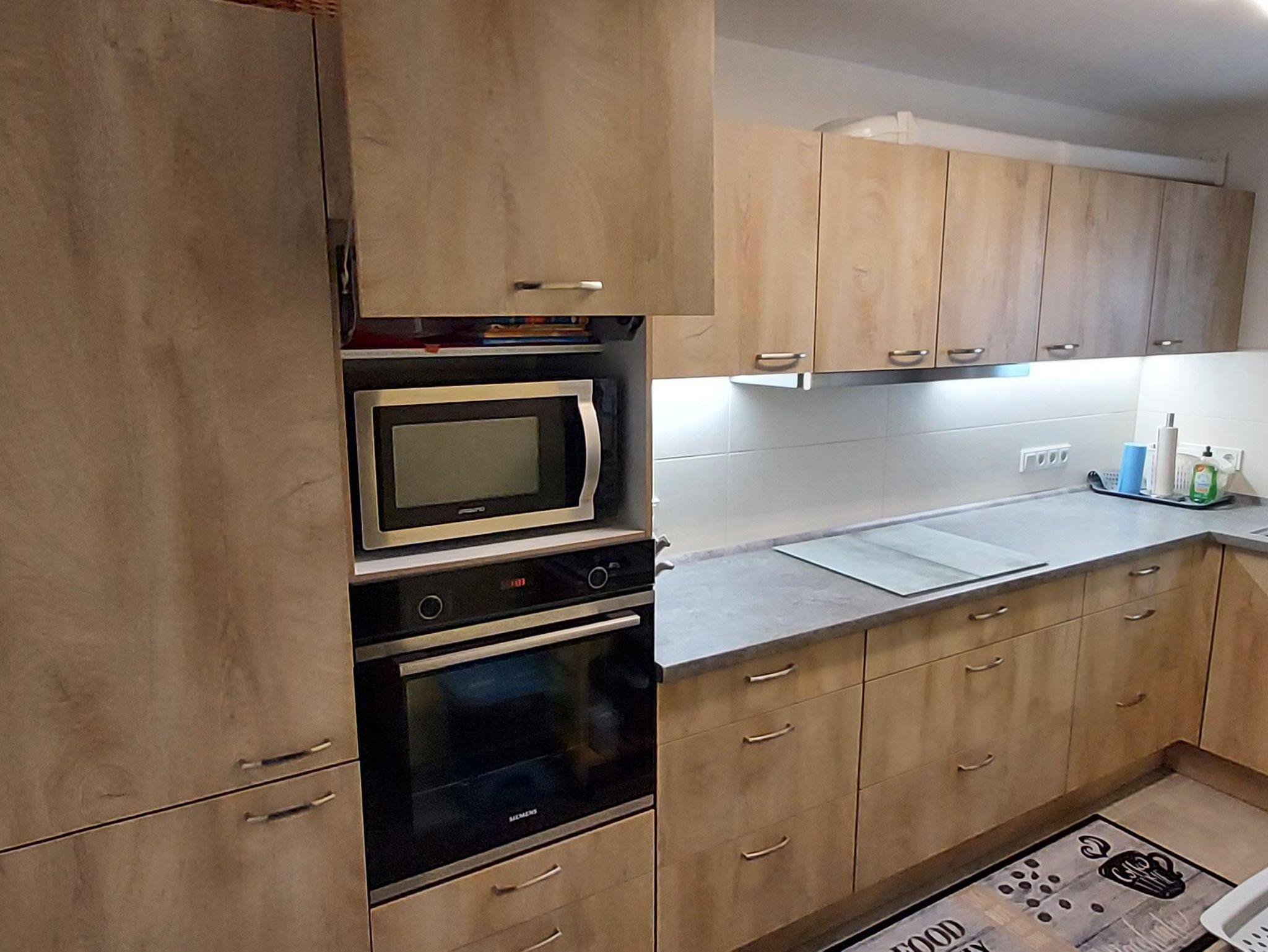 Die Küche In der Küche werden Sie sich wie zu Hause fühlen. Die Geräteausstattung umfasst: Induktionskochfeld, Backofen, Kühlschrank, Gefrierschrank, Geschirrspüler, Mikrowelle, Toaster, Kaffeemaschine sowie weitere elektrischen Geräte.