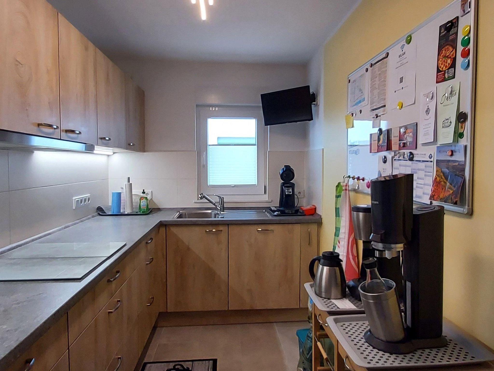 Küche: Induktionskochfeld, Backofen,Kühlschrank, Gefrierschrank, Geschirrspüler, Mikrowelle, Toaster,Kaffeemaschine sowie weitere elektr. Geräte. Die Küche ist mit allem ausgestattet, was erforderlich ist. (Geschirrtücher vorhanden, Gewürze teilweise)
