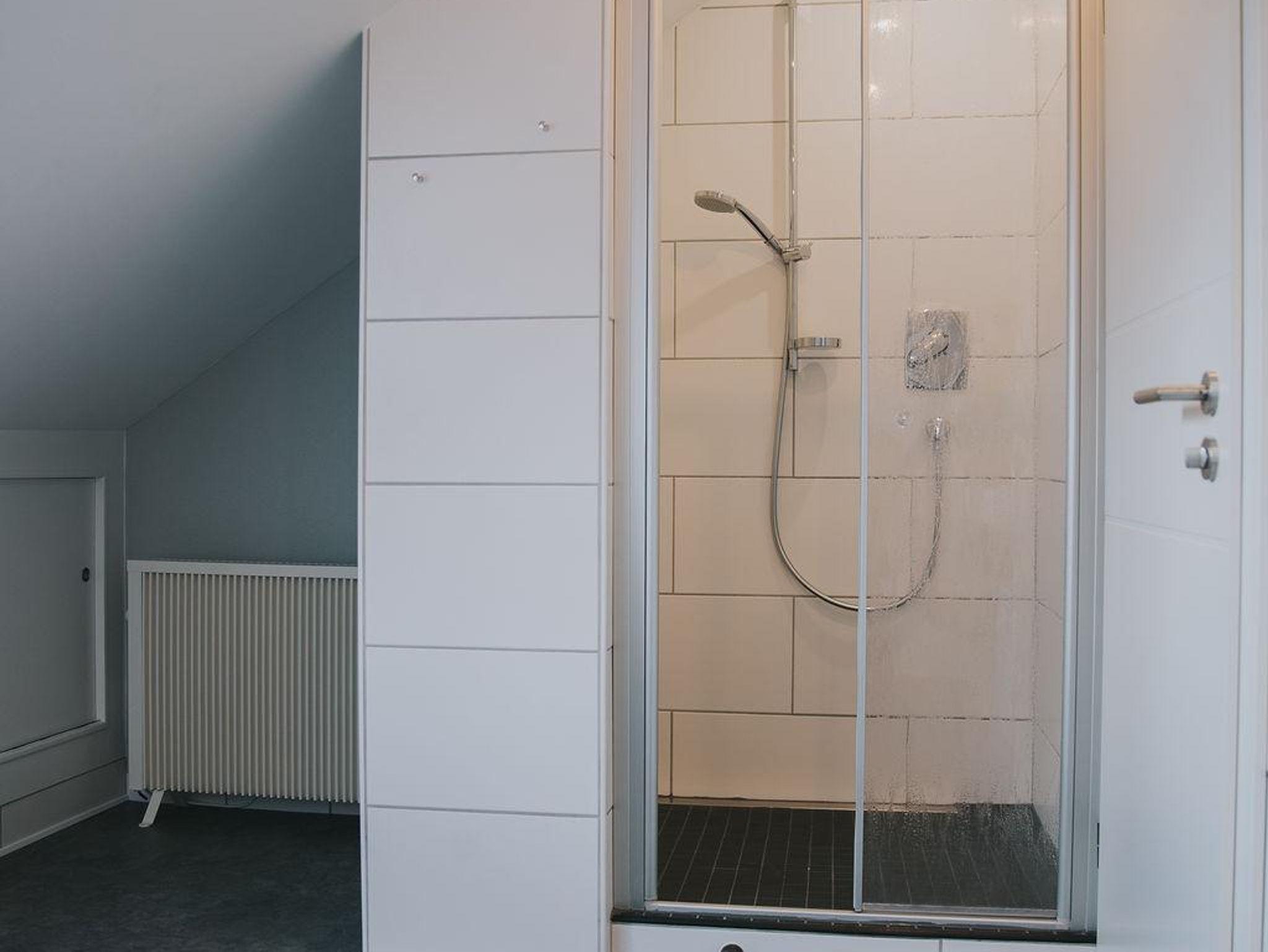 Über die Treppe erreicht man die zweite Wohnebene mit