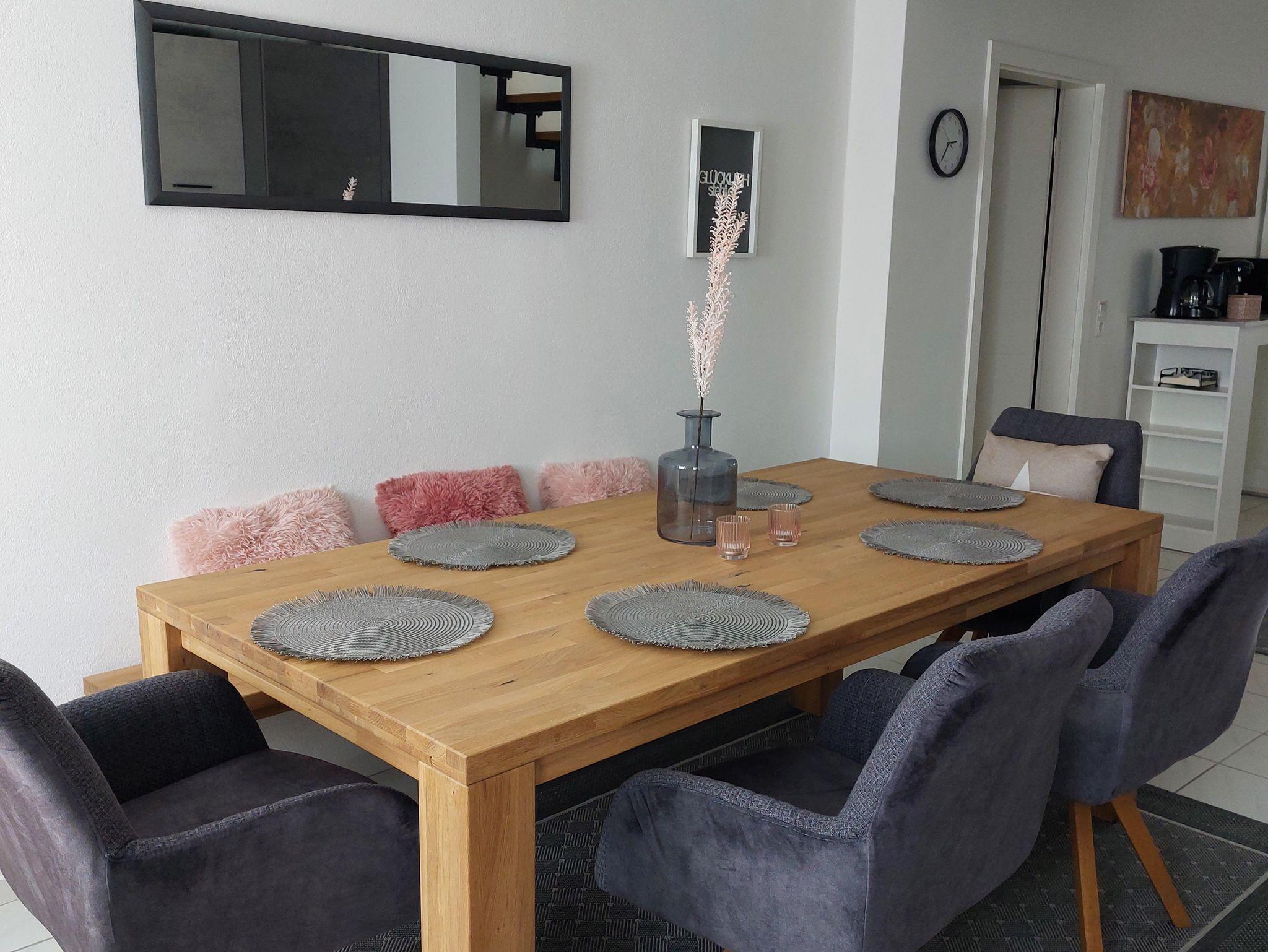 Unsere neu eingerichtete Wohnung verfügt über 120 m² und bietet Platz für bis zu 5 Personen, aufgeteilt auf zwei Etagen. Zum Verweilen lädt eine große, überdachte Terrasse mit Grillmöglichkeit und Blick in den Garten ein. Für Familien mit Kindern steht ein großer Garten zum Spielen zur Verfügung.