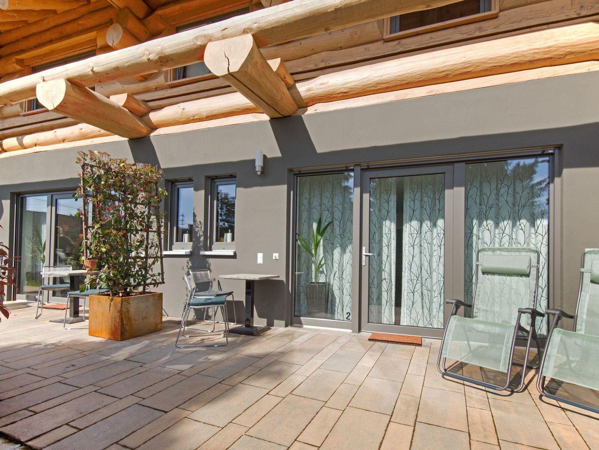 Die Studio Apartments 1 und 2 des Feriendomizils Sonnenberg bieten Ihnen modernen Komfort auf je 40 qm. Die Apartments befinden sich nebeneinander im Untergeschoss des Blockhauses mit großzügiger Terrasse. Durch die Bebauung in den Hang ist es im Sommer angenehm kühl, im Winter sorgt die regelbare Fußbodenheizung für eine Anpassung an die individuellen Bedürfnisse.