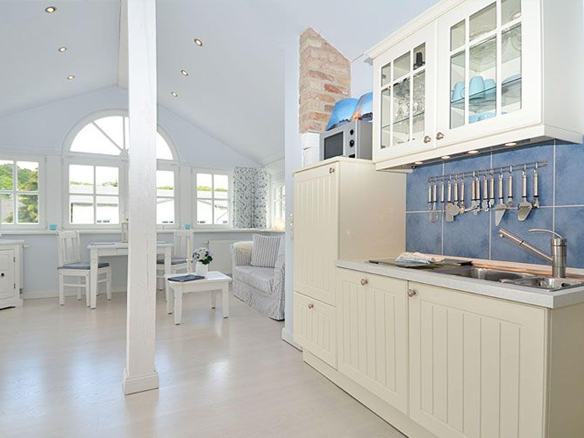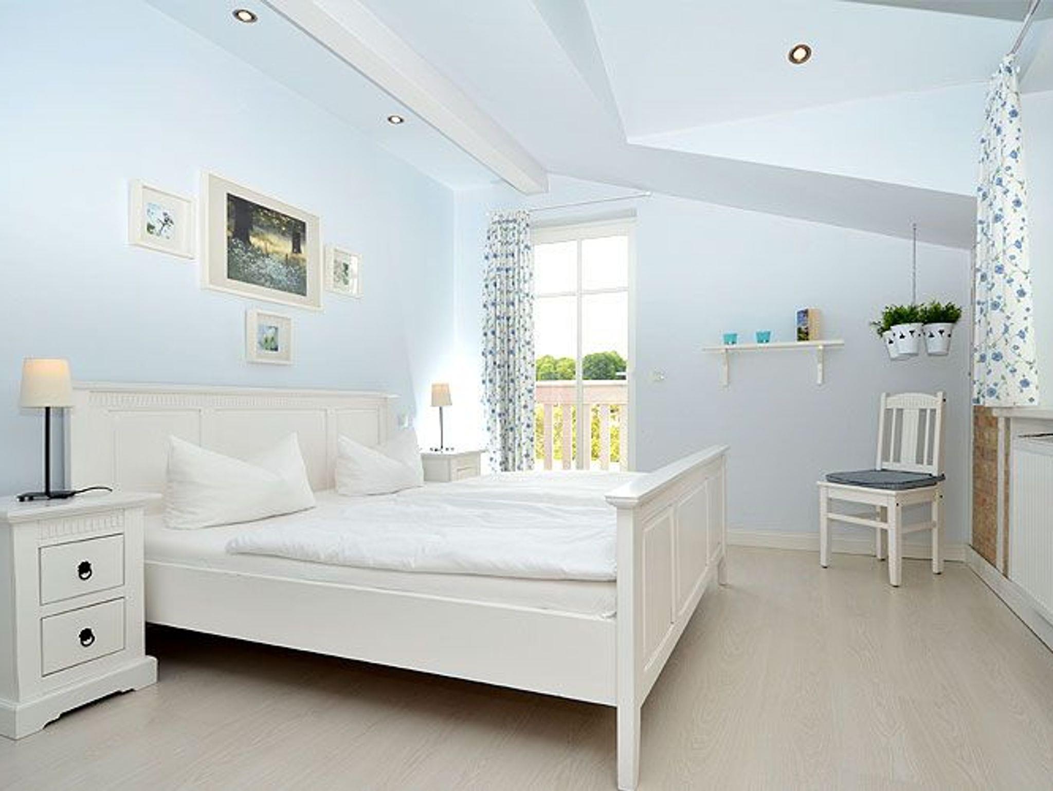 Wohnung 6: Dieses sehr schöne 2-Raum-Appartement im Dachgeschoss ist im weißen Landhausstil eingerichtet und hat eine Wohnfläche von ca. 48 m² sowie einen möblierten Balkon (ca. 5 m²) zur Abendsonne.