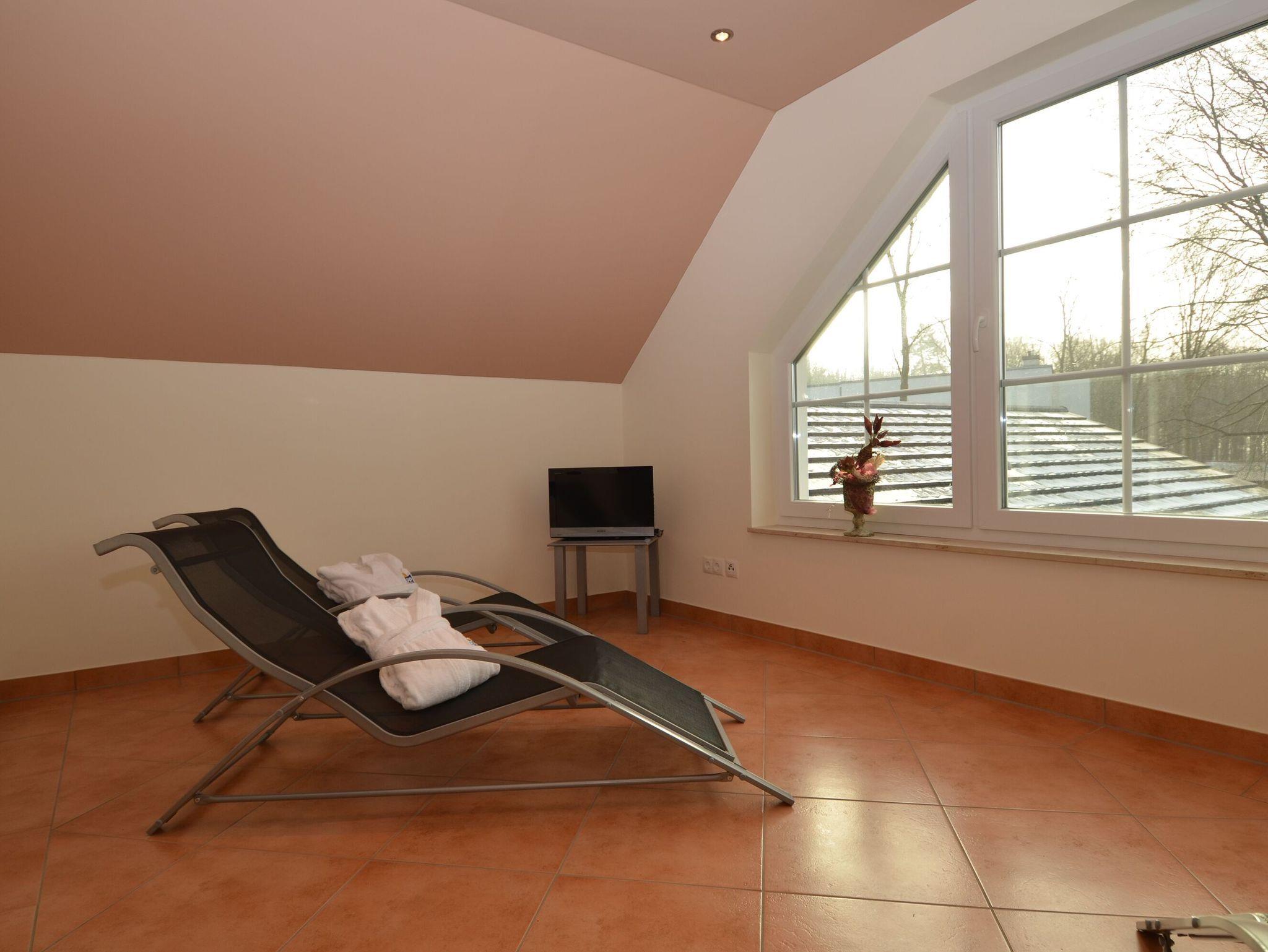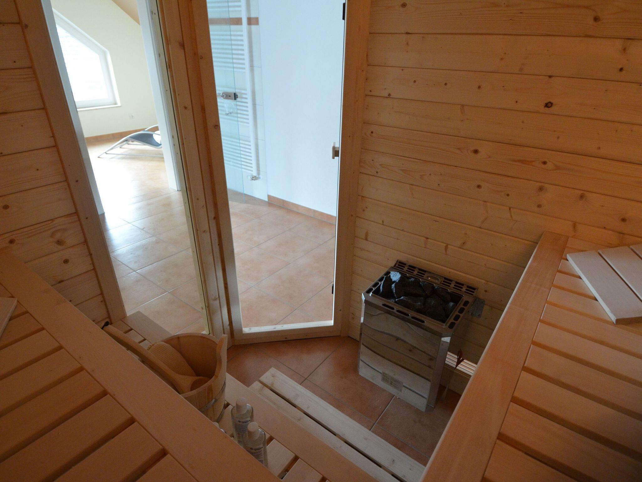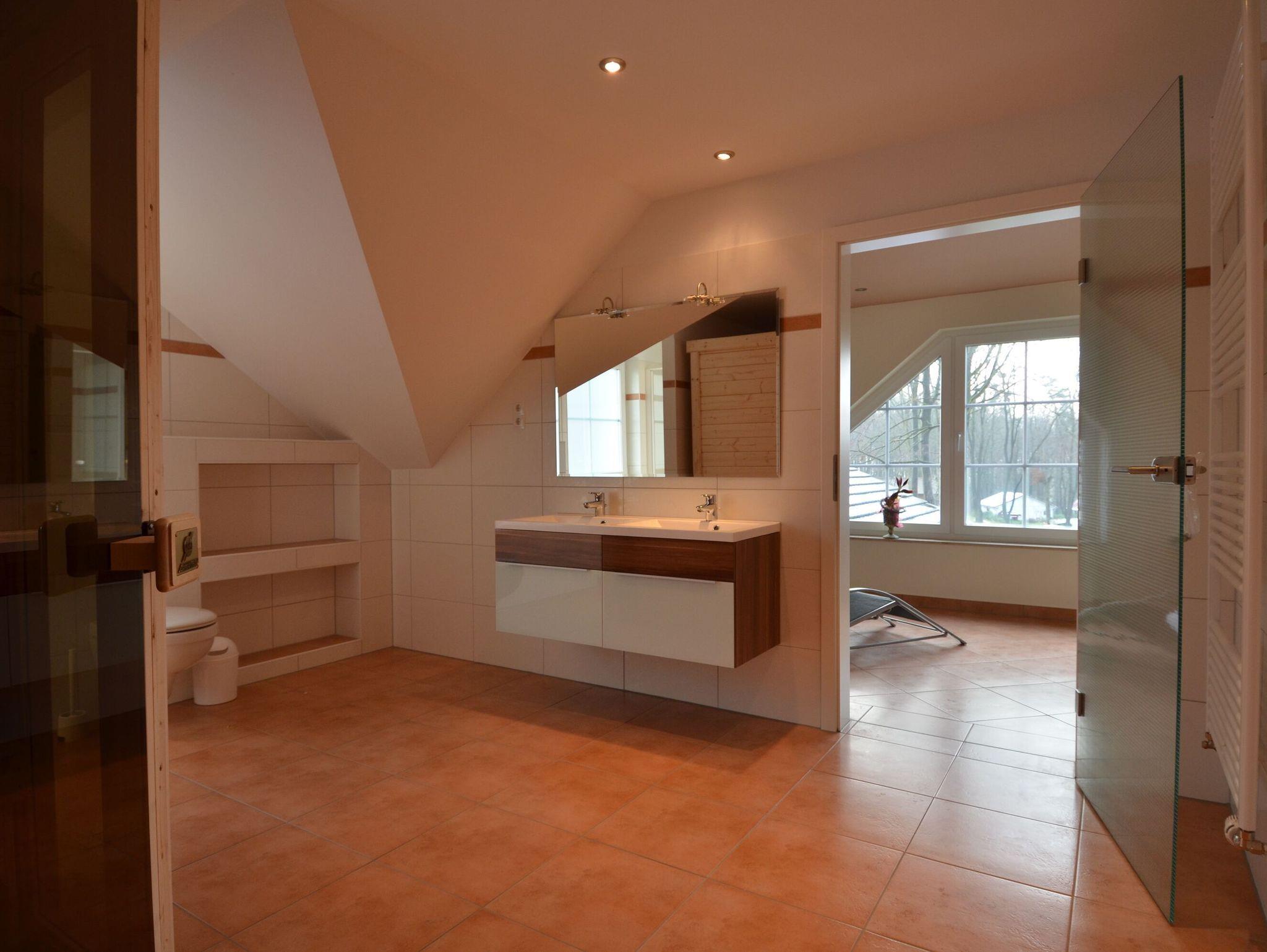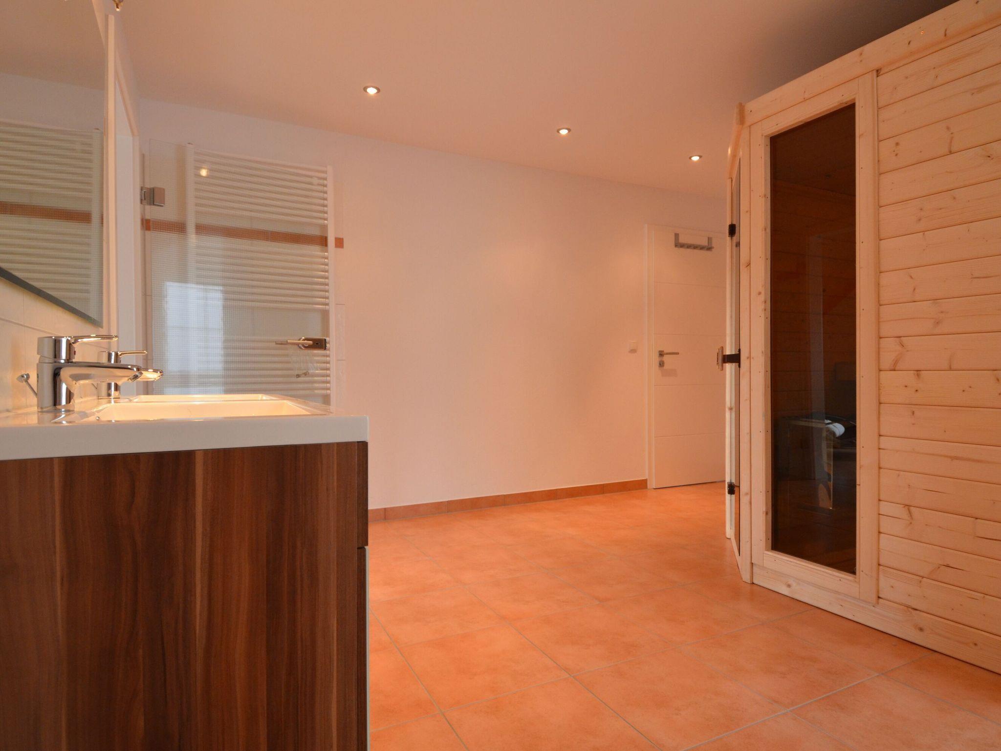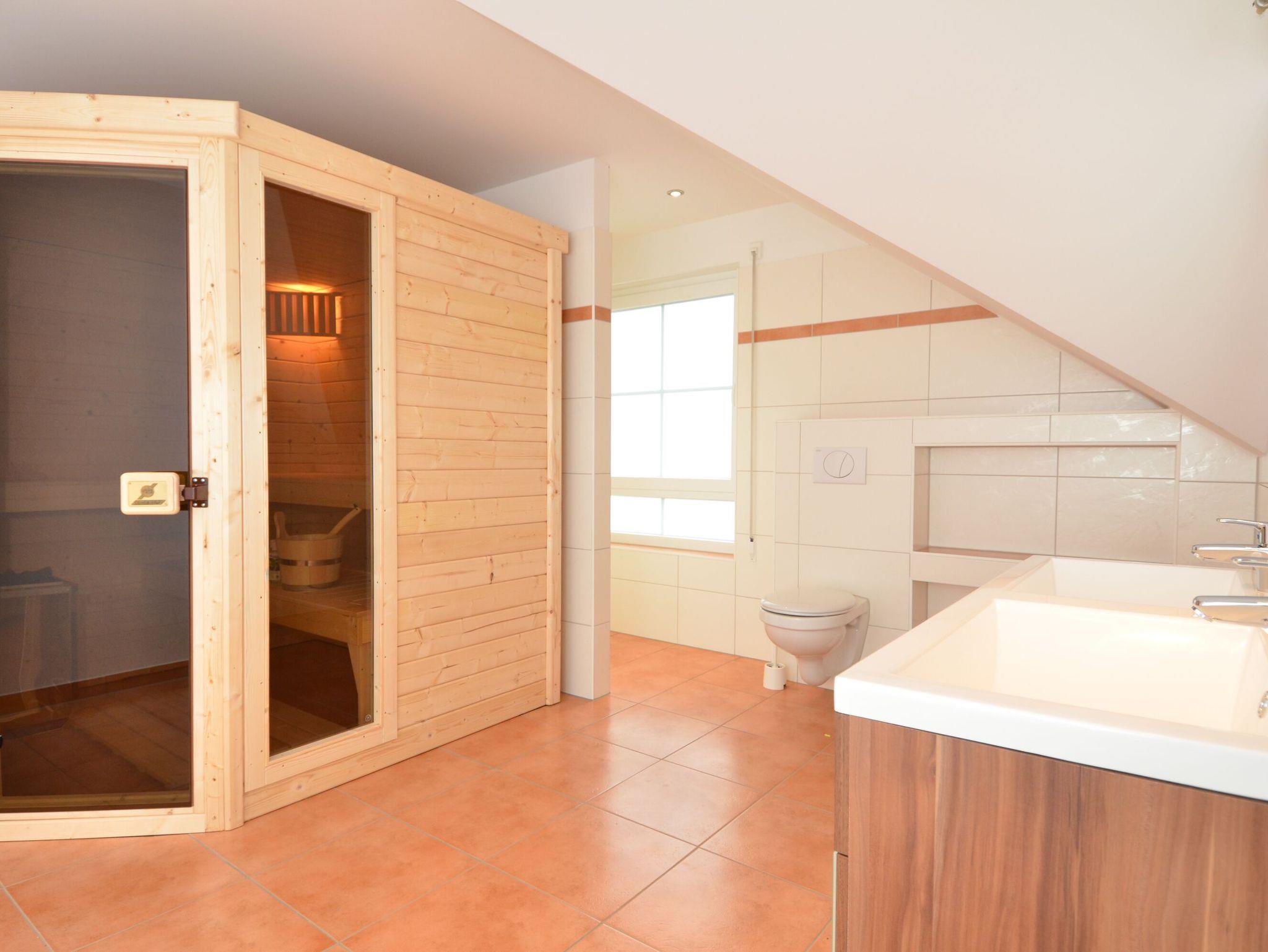 Eines der beiden Badezimmer auf dieser Etage ist mit einer Dusche und einer Badewanne ausgestattet, das andere mit Dusche und einer Sauna. Auf dieser Ebene finden Sie ebenfalls den Saunaruheraum/Relaxraum mit Ruheliegen, sonnigem Südblick und eigenem TV vor.