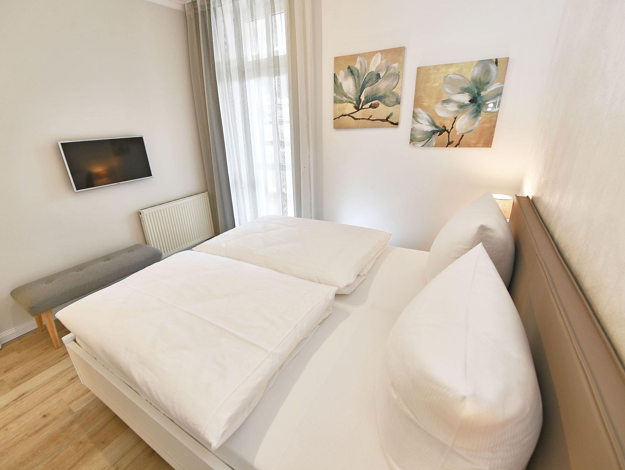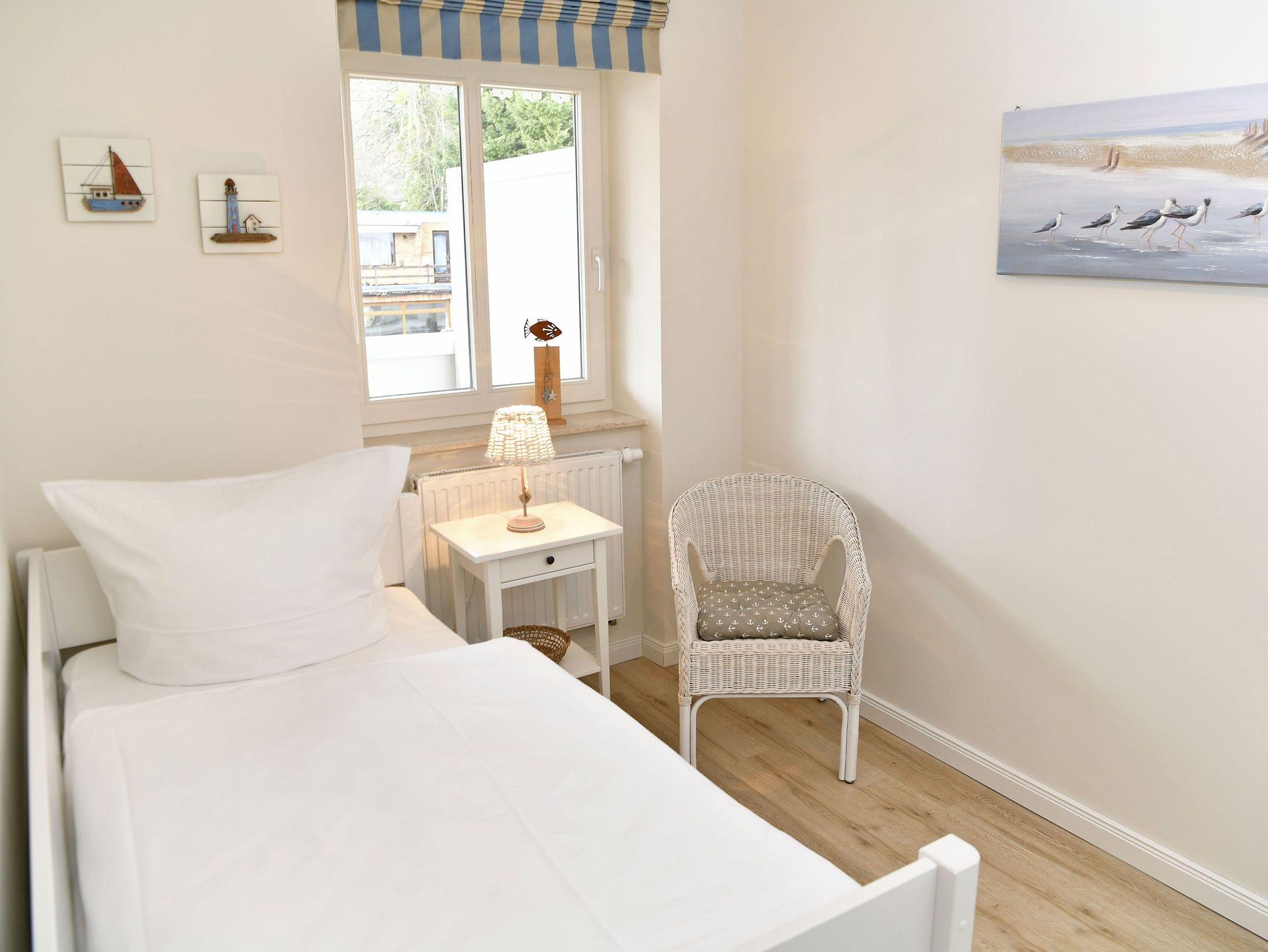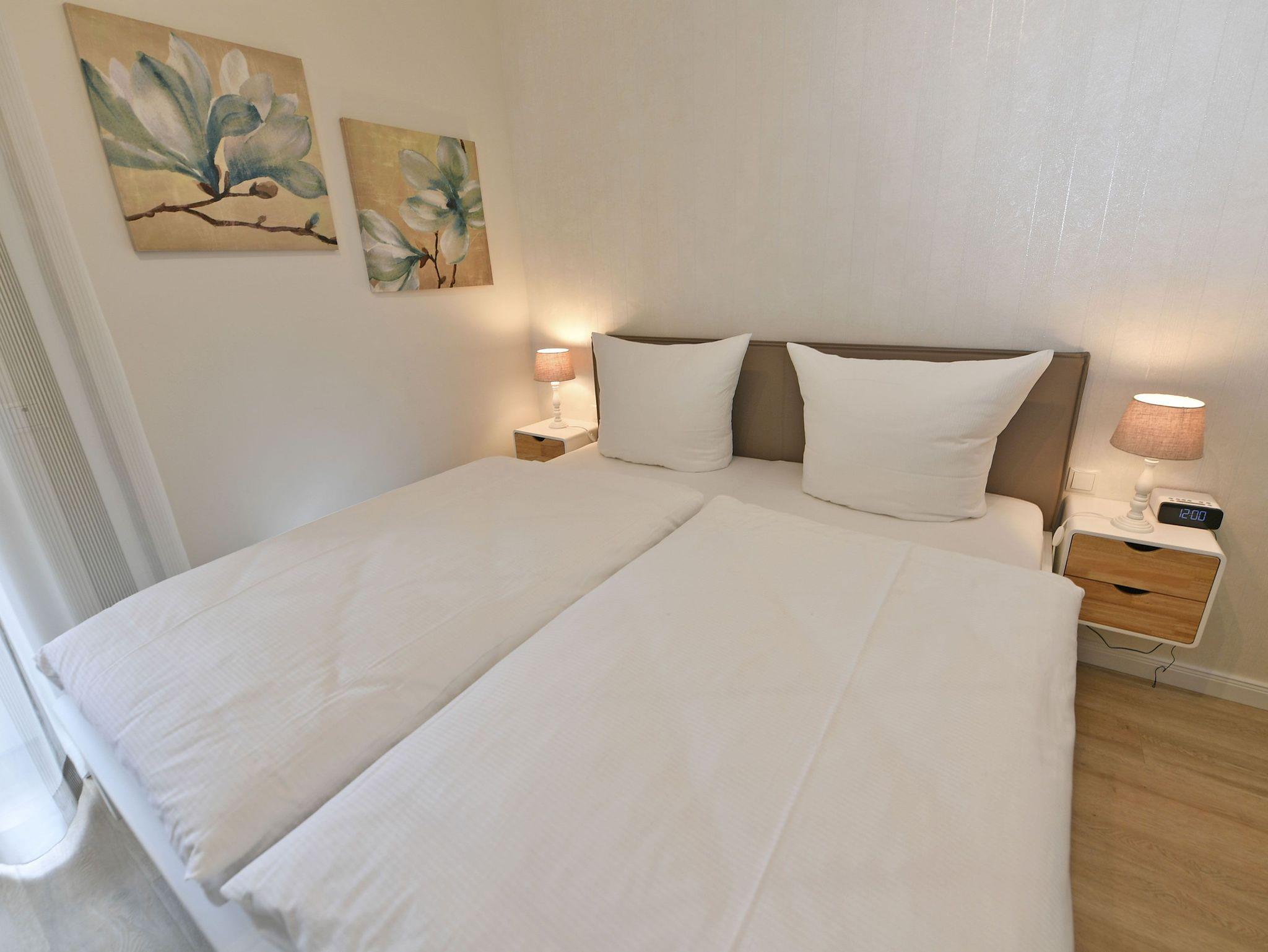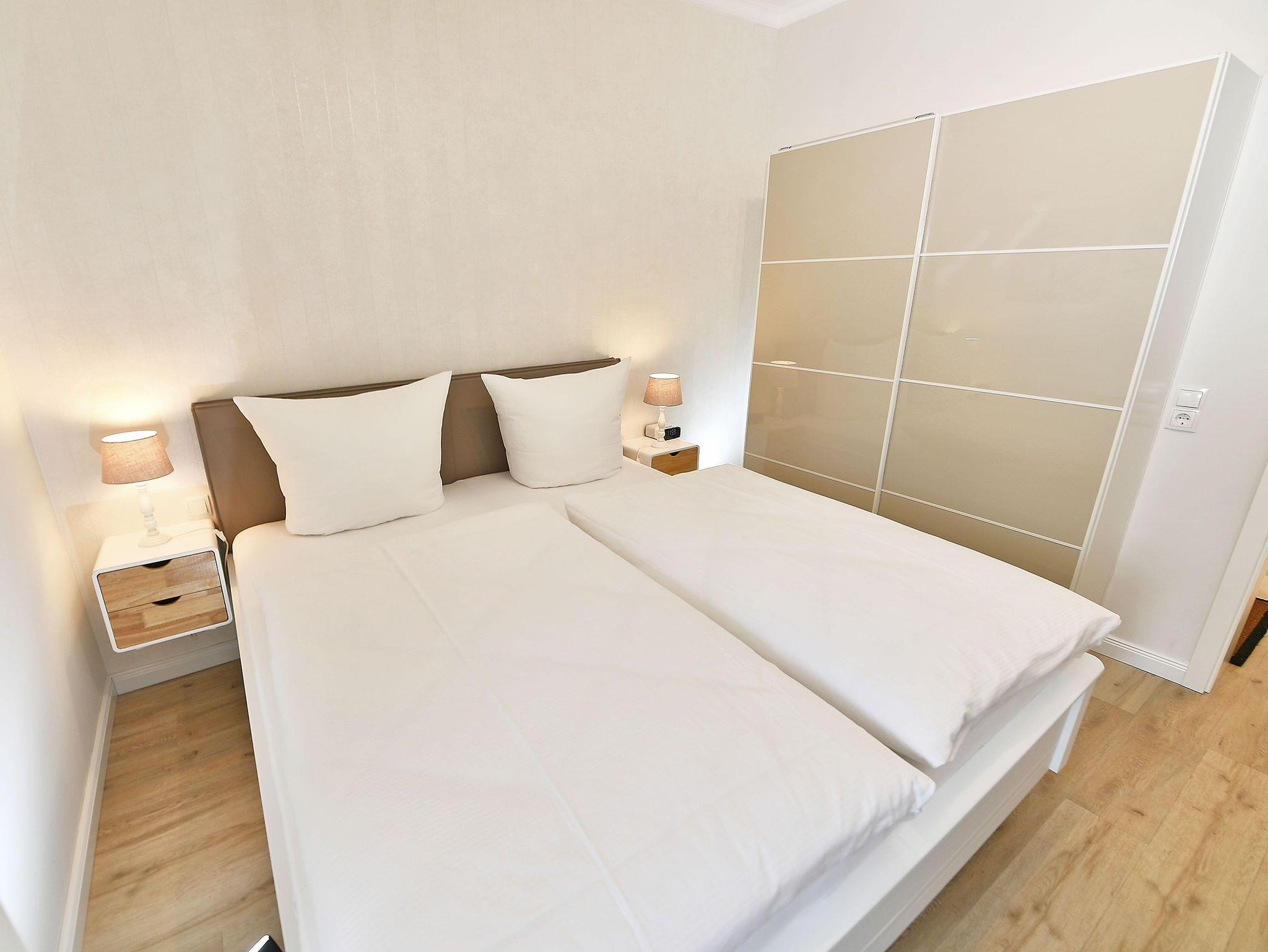 Im ersten Schlafzimmer finden Sie ein komfortables Doppelbett (1,80 x 2,00 m) für einen erholsamen Schlaf, einen Kleiderschrank für Ihre Urlaubsgarderobe sowie einen 32? Flachbild-Fernseher. Das zweite Schlafzimmer ist mit einem Bett, welches noch über ein Ausziehunterbett (0,90 x 2,00 m) verfügt, sowie einem Kleiderschrank eingerichtet. Ein Kinderreisebett erhalten Sie auf Anfrage und gegen Gebühr.