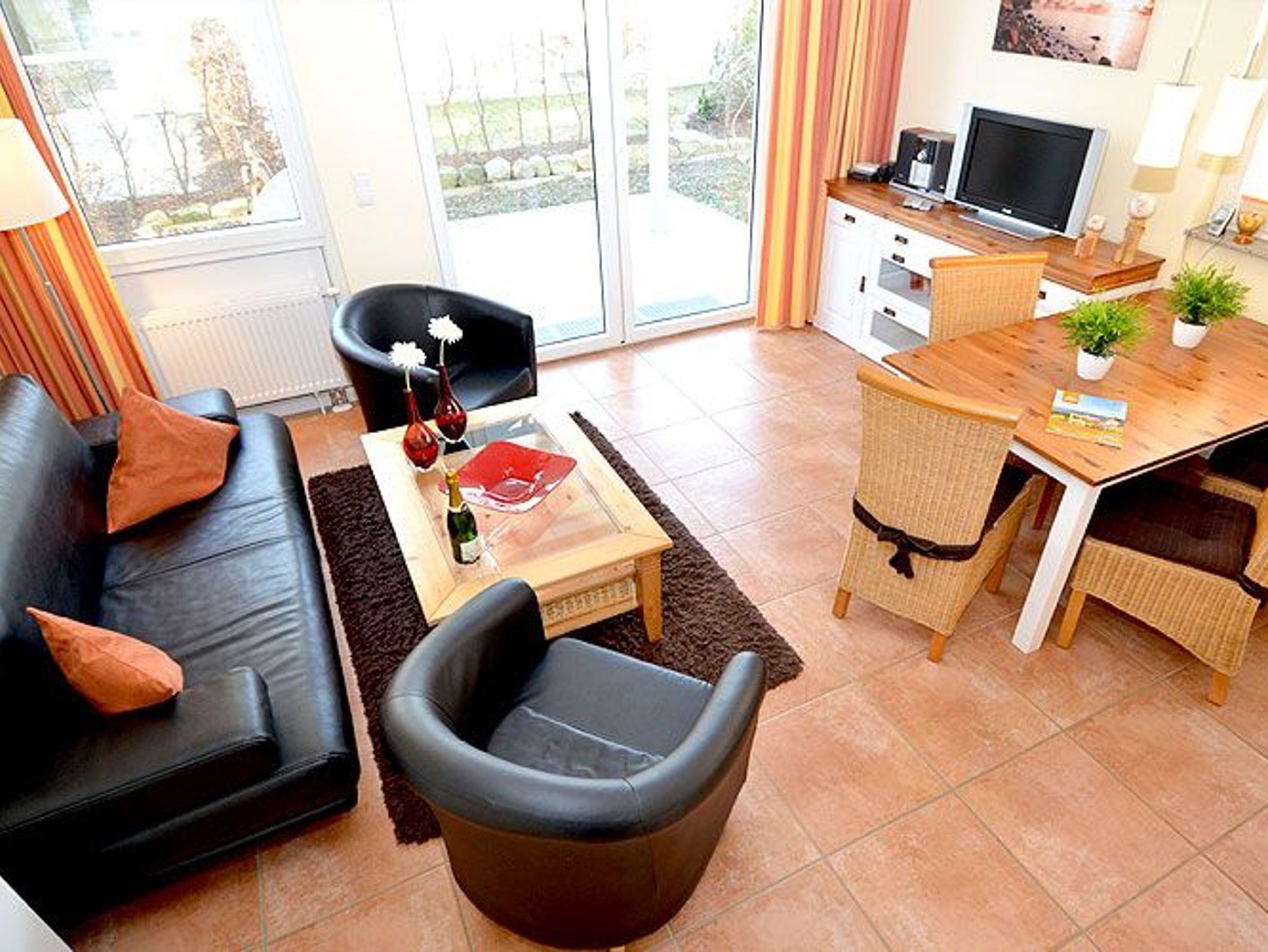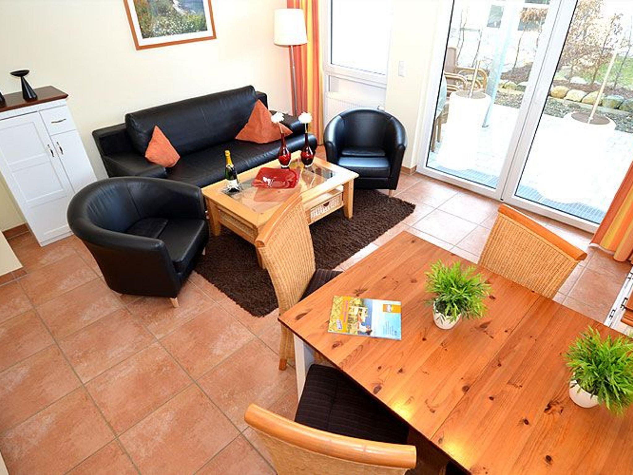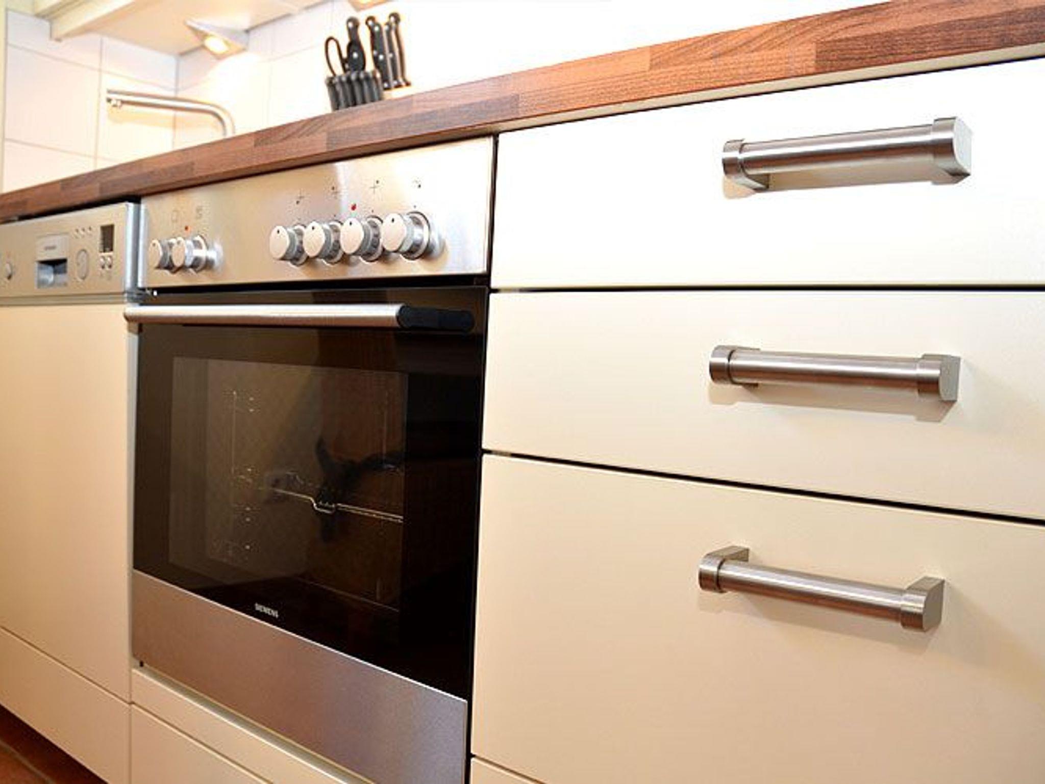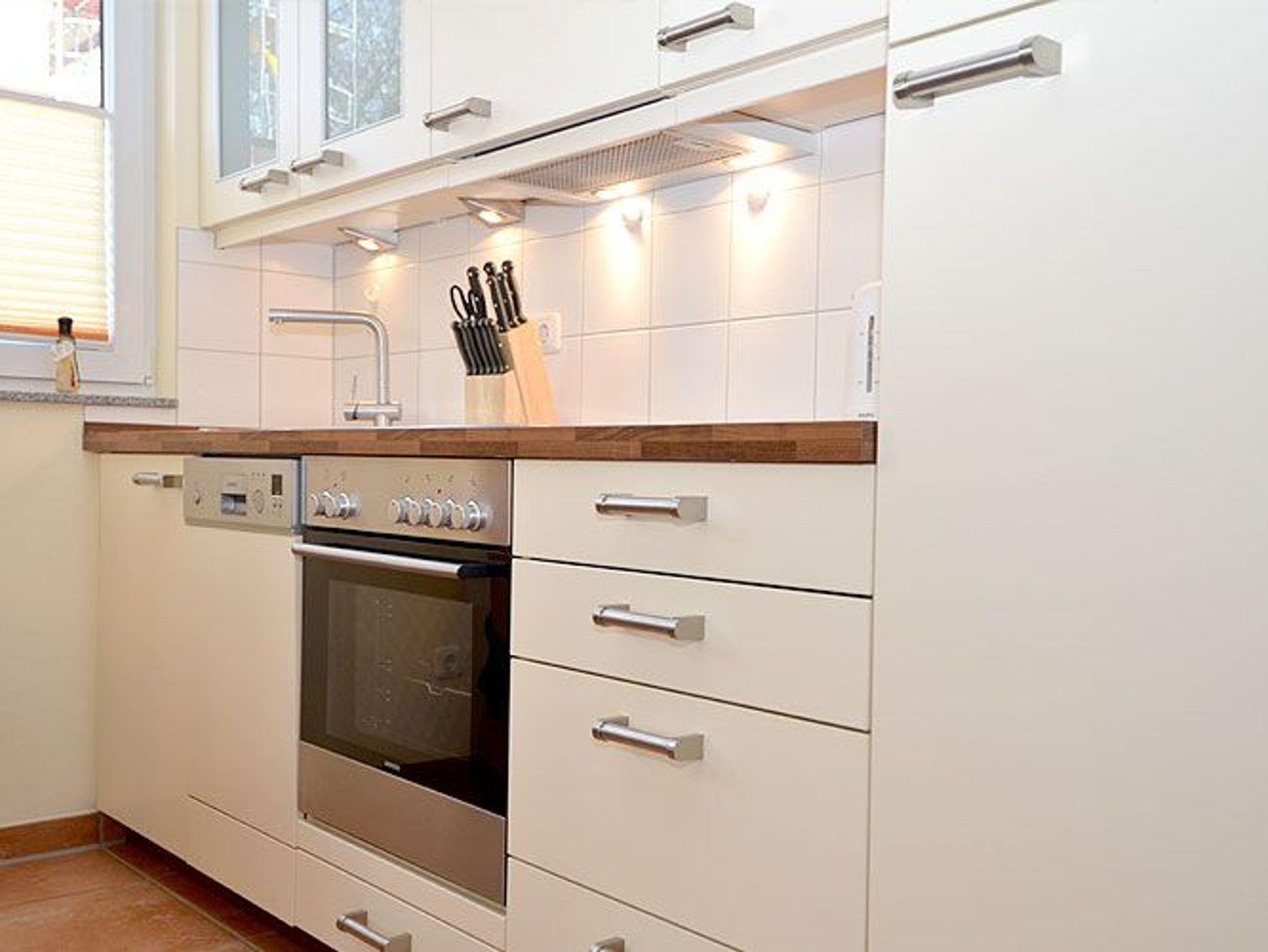 Die Nichtraucher-Wohnung bietet ein geräumiges Wohnzimmer mit einer bequemen Schlafcouch, einem Esstisch und einer Küchenzeile die keine Wünsche offen lässt. Sie finden hier eine Spülmaschine, eine Mikrowelle, einen Kühlschrank, 4-Platten-Ceranfeld, einen Backofen und diverse Kleingeräte, die die Ausstattung komplettieren.
